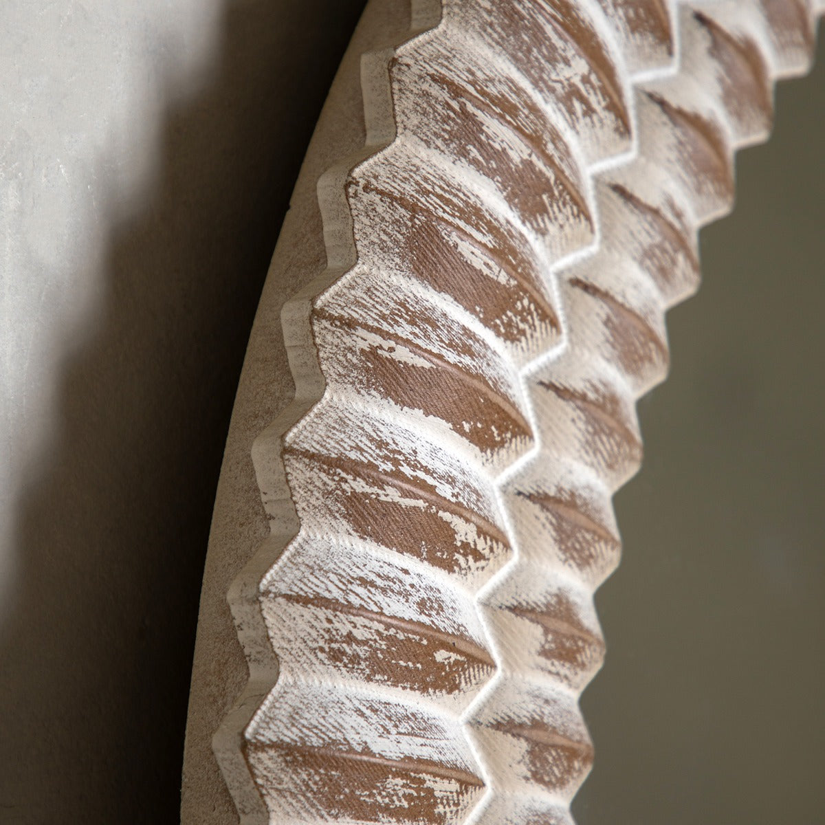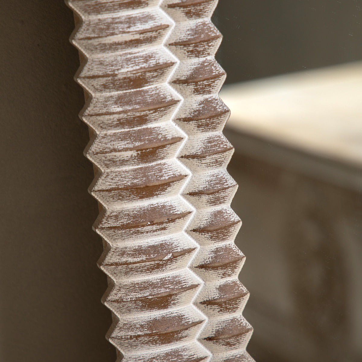 Elevate your decor with the unique charm of our arch-top leaner mirror, highlighted by a stunning 3D wooden etching style frame in a whitewash finish. The graceful arch design adds an elegant curve, while the intricate etching offers a textured, three-dimensional effect that catches the eye. The whitewash wood finish enhances the detailed craftsmanship, making this mirror a standout piece in any room. Perfect for leaning against a wall or as a striking design element, it combines functionality with artistic sophistication, adding timeless beauty and refined style to your living room, bedroom, or entryway.