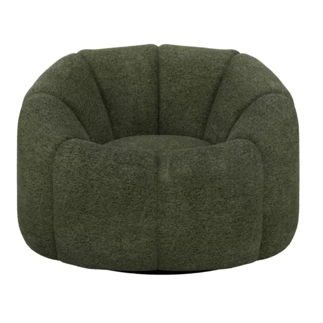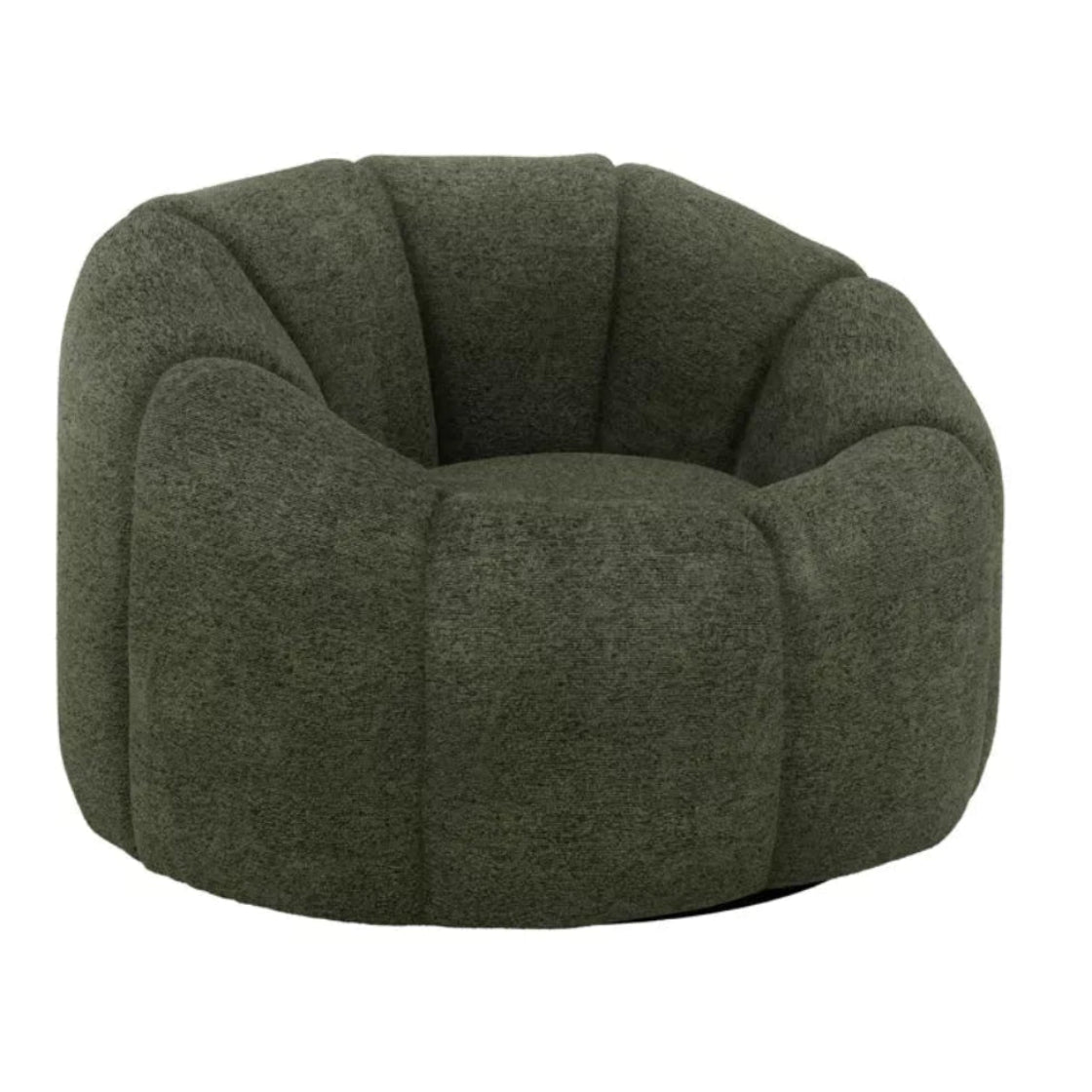 Upholstered in trending chenille boucle fabric, this contemporary swivel chair combines style and comfort, elevating the look of any interior.