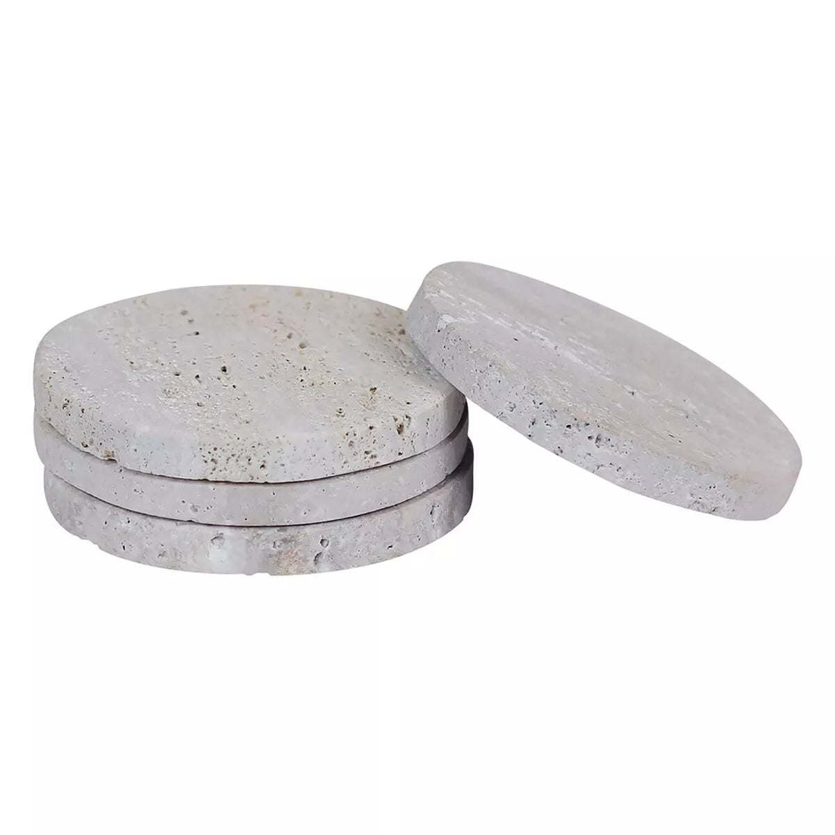 The Tibor Set of 4 coasters is crafted from natural travertine, known for its porous texture and earthy, light tones. With their classic round design, these coasters are effective at protecting table surfaces and also look great on display. * Due to the natural materials used in the creation of these products, slight variations in colour, texture, and size may occur. These natural variations are an inherent characteristic and should be considered part of the unique beauty of each piece.