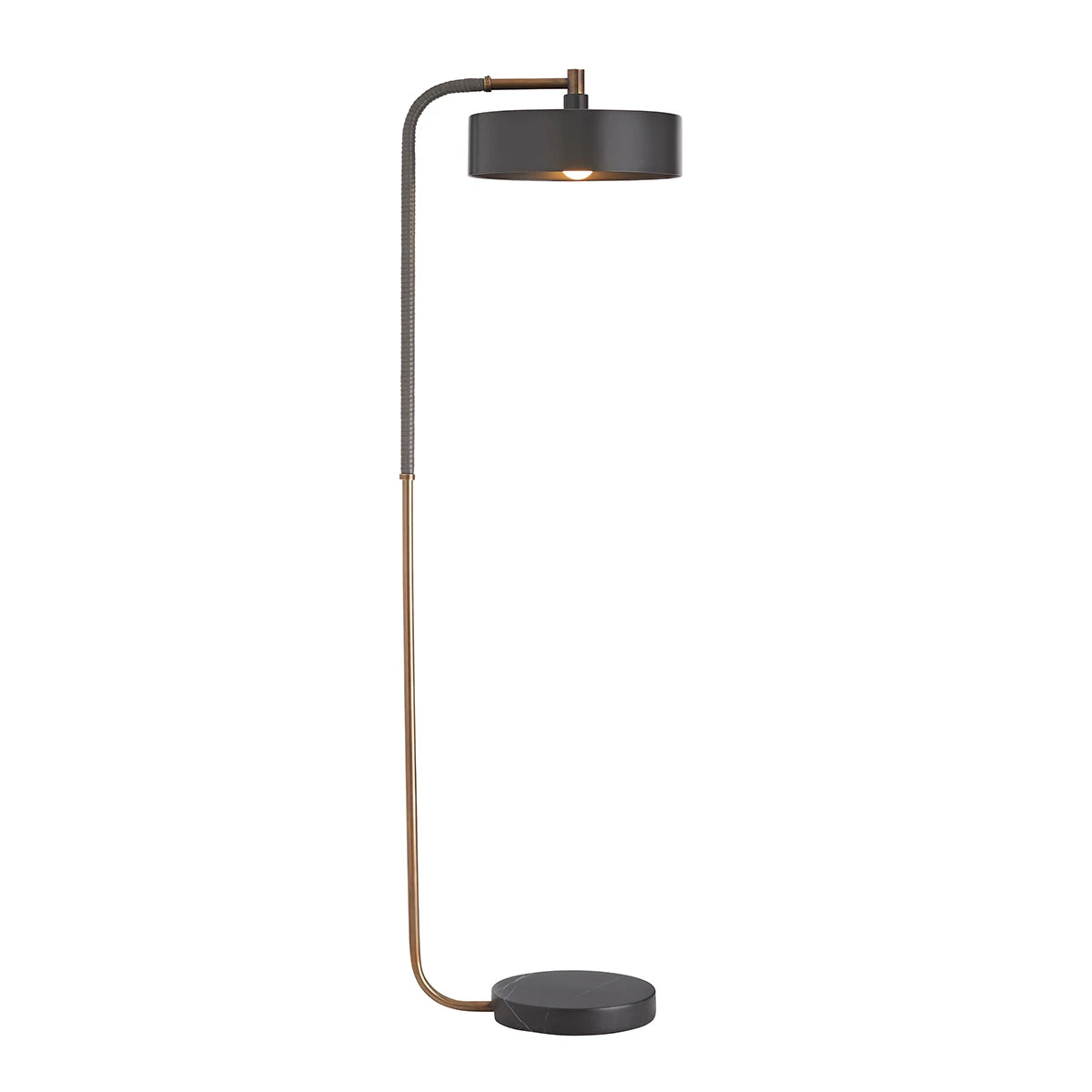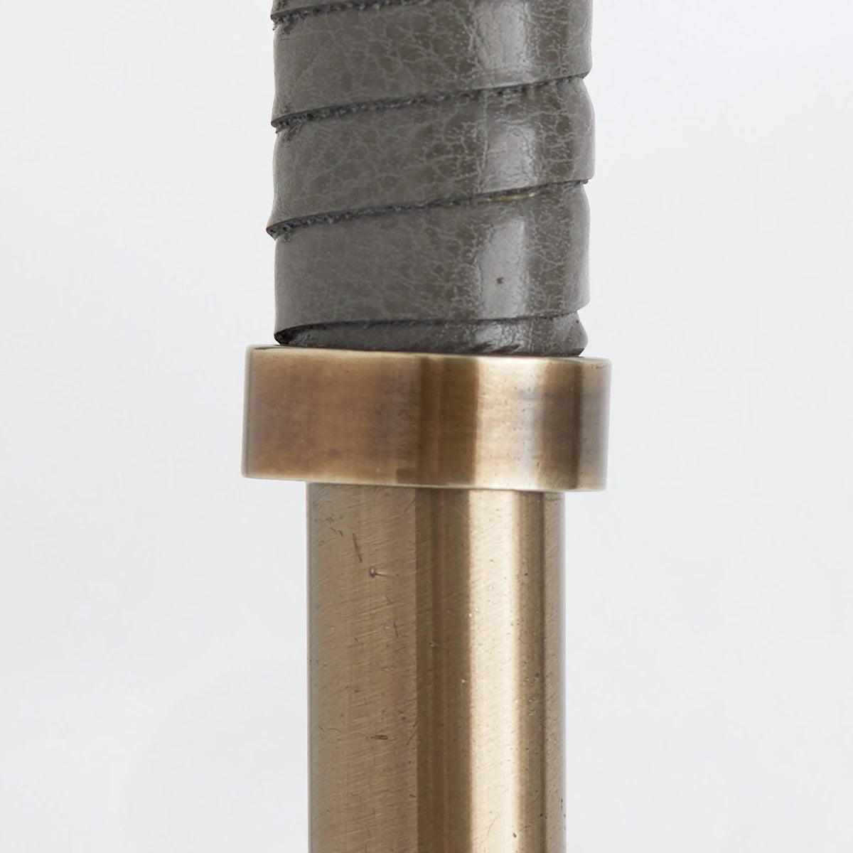 This collection possesses a modern sensibility defined by a sleek style and masterly materials in two combinations. The heritage brass steel frame is wrapped in gray leather and blends with a circular black marble base, creating a beautiful balance between natural and refined elements.