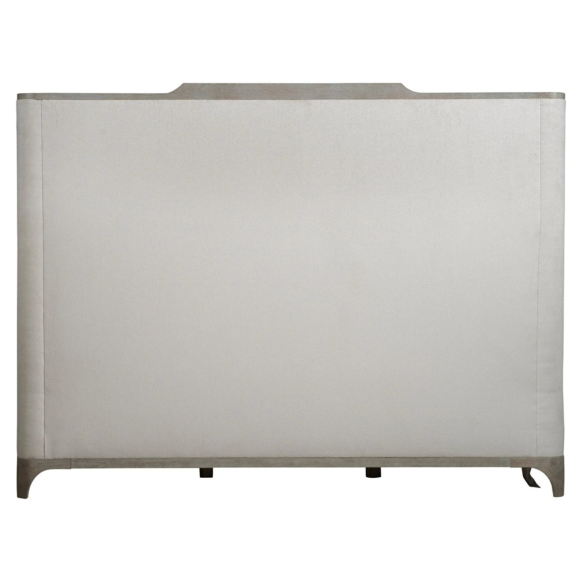 With a shaped upholstered headboard wrapped in a wooden frame, the Albion shelter bed takes its inspiration from wingback chairs, creating its own cocoon of comfort. Sweeping lines are highlighted by the wood outline, finished in a casually chic Pewter. A softly upholstered footboard and side rails complement the tall upholstered headboard.