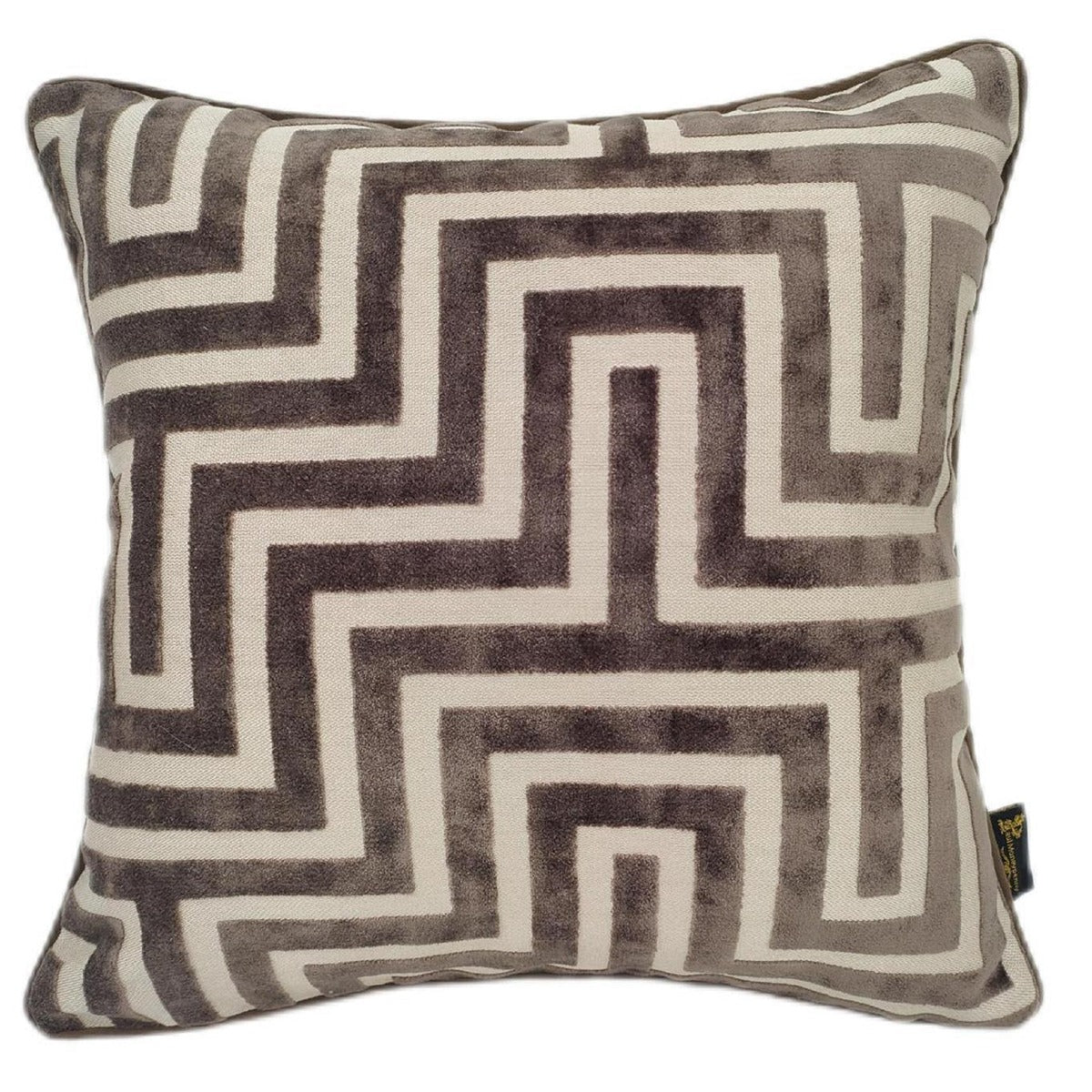 Amazing Maze Cut Velvet Cushion - Chocolate