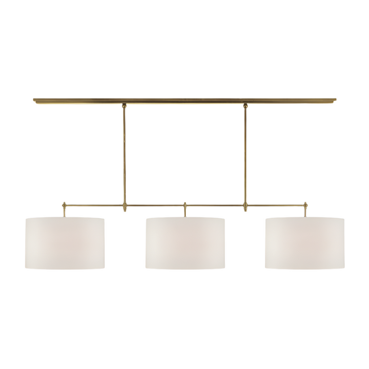Bring on industrial chic paired with a touch of 1920s Art Deco flair with the Bryant pendant light by Andrew Martin. Crafted by the iconic designer Thomas O’Brien, this pendant features three neutral lamp shades and a hand-rubbed antique brass finish.