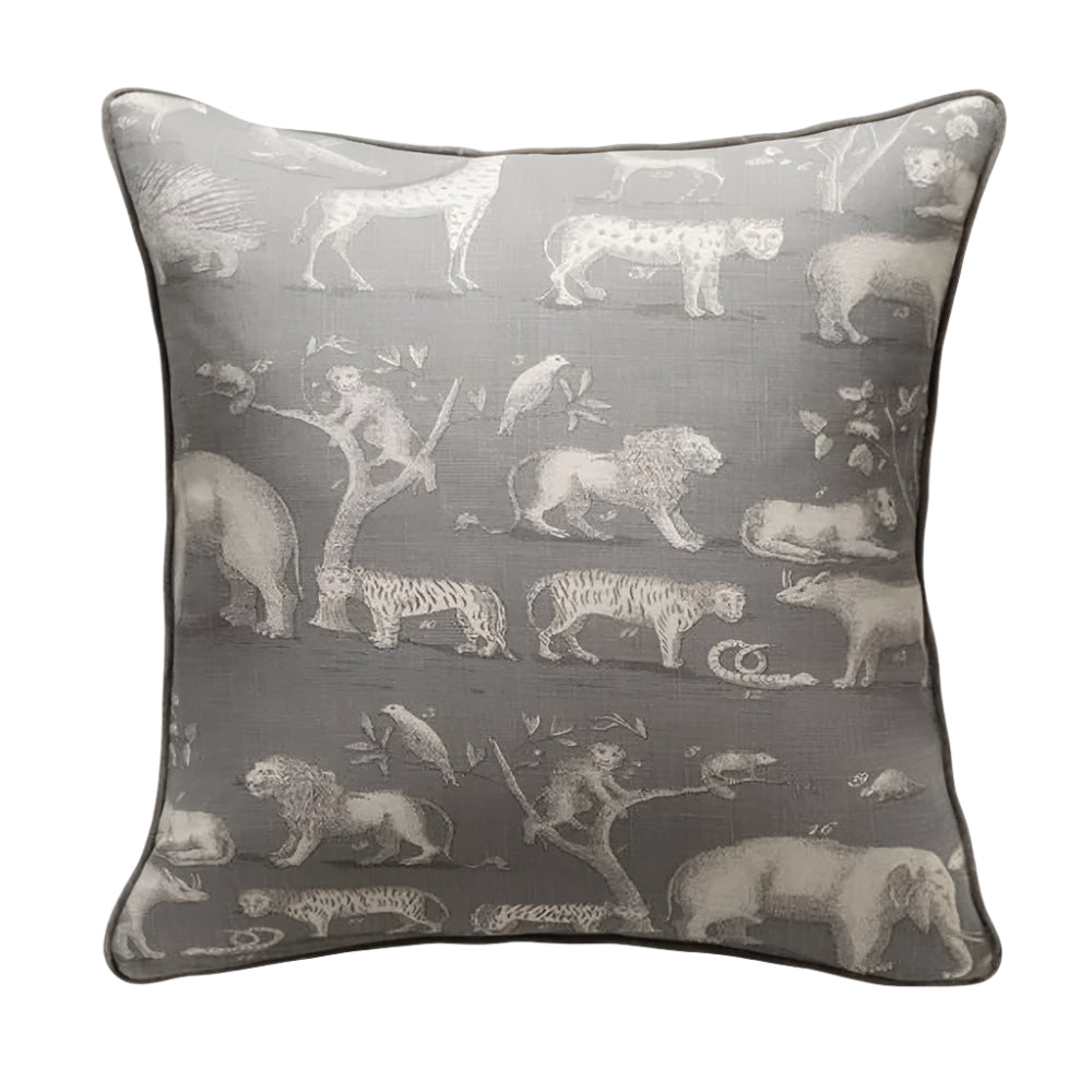 This luxurious cushion radiates exotic vibes, drawing inspiration from the coveted heritage style of vintage Darwinian prints. With gloriously detailed features, including images of elephants, rhinos, camels, giraffes and porcupines, the feel of a luxury safari is delicately imbued.