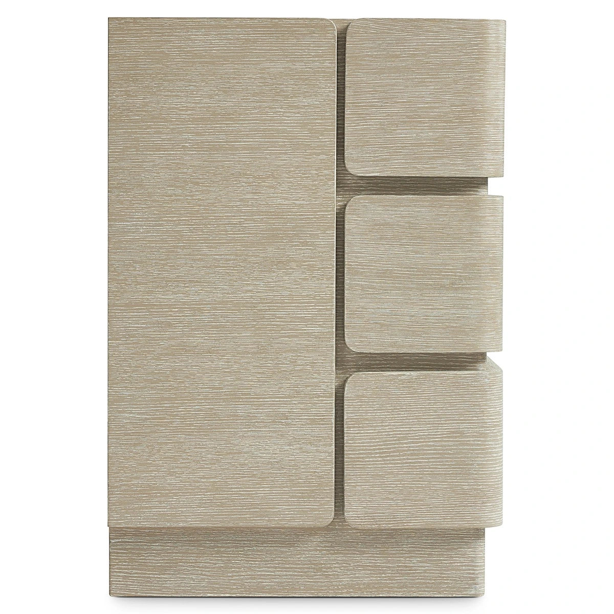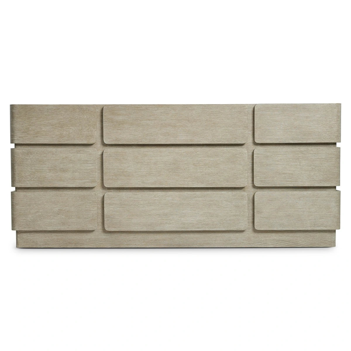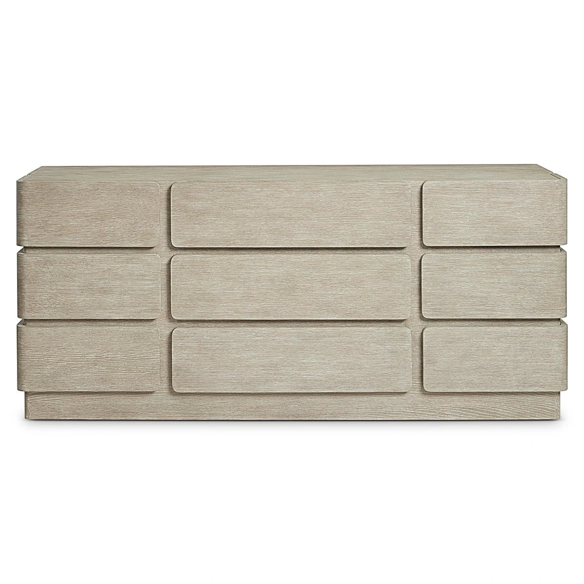 The Arcadia dresser offers an understated design that is both modern and unexpected. The six outside drawers wrap around the sides of the dresser, offering a unique detail. Three larger center drawers have flat fronts. The wire-brushed dresser is finished in Clay for a beautiful textural style.