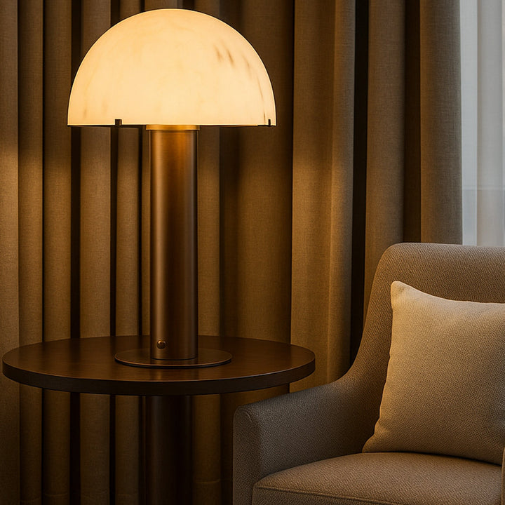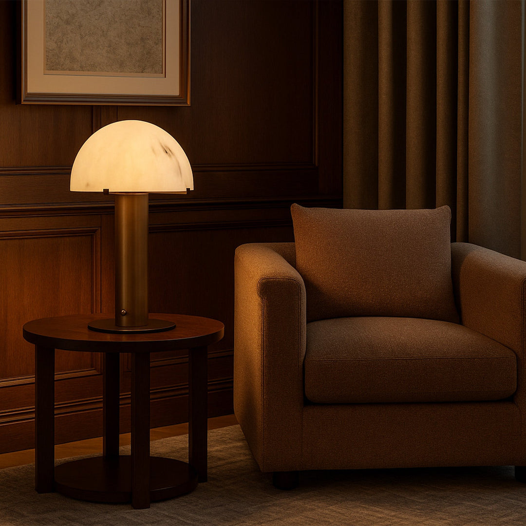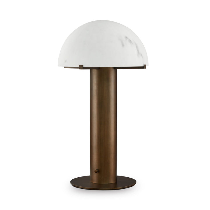 Sculptural and serene, the Aston Table Lamp pairs a softly glowing alabaster effect dome with antique brass detailing for a timeless and quietly sophisticated presence in any refined setting.