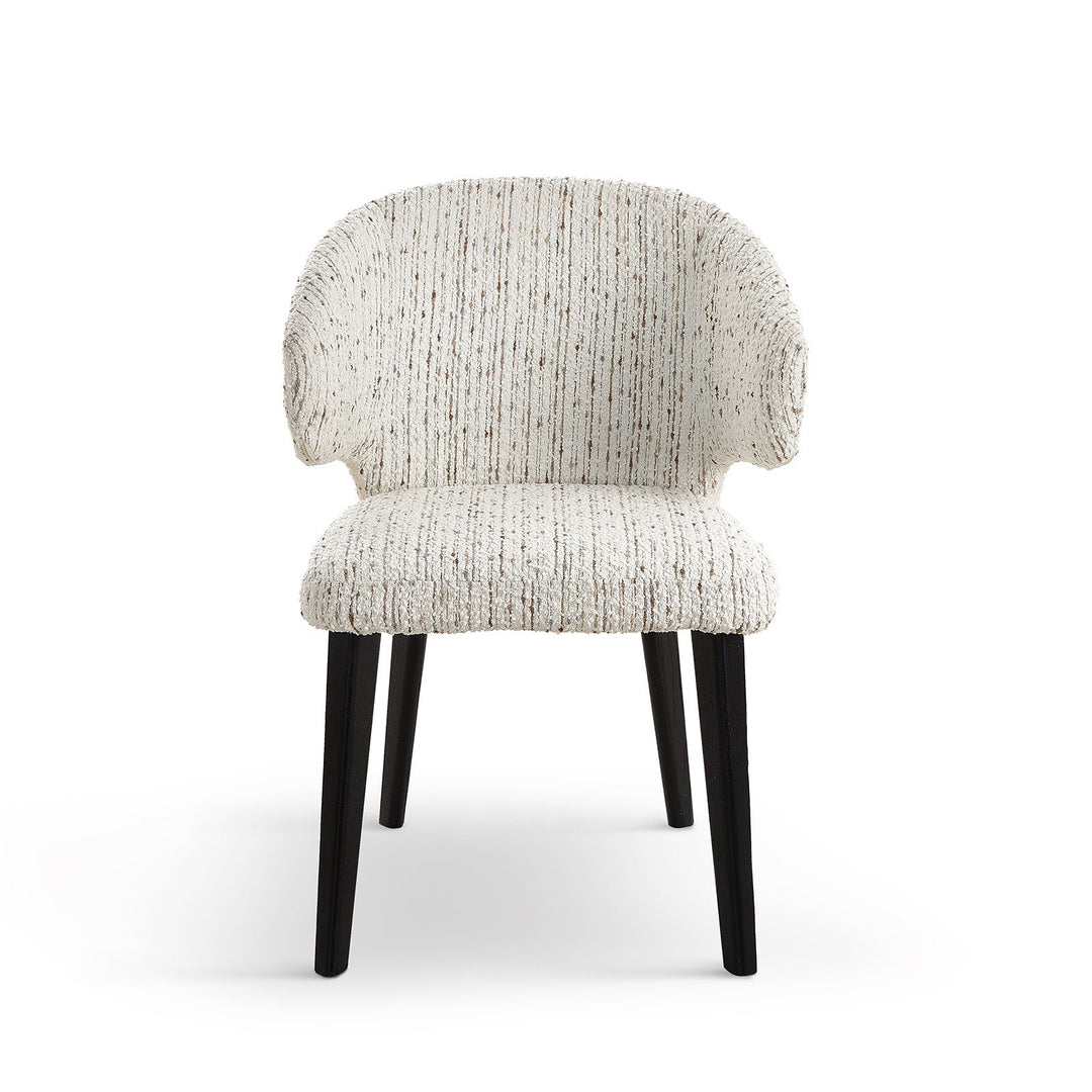 The Austin Dining Chair in Gloria Natural Crib 5 upholstery and Matte Black blends sculptural elegance with everyday comfort. Its distinctive silhouette and rich texture make it a sophisticated addition to residential or hospitality interiors.