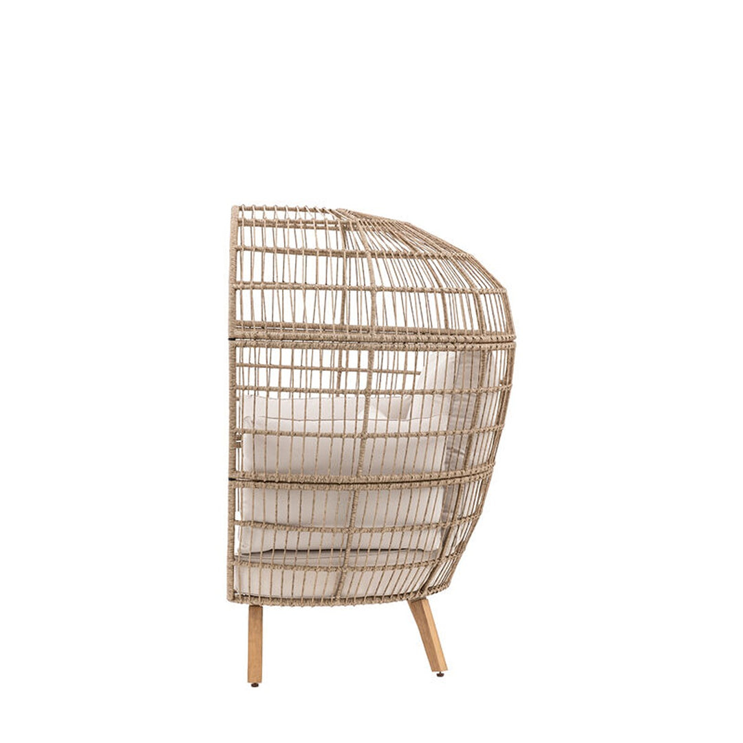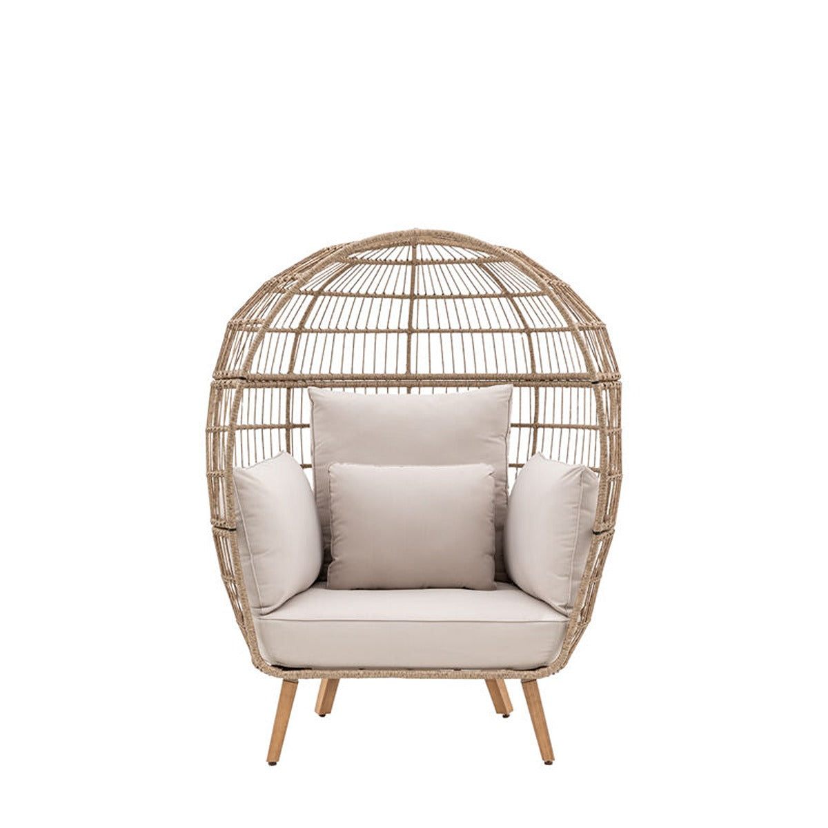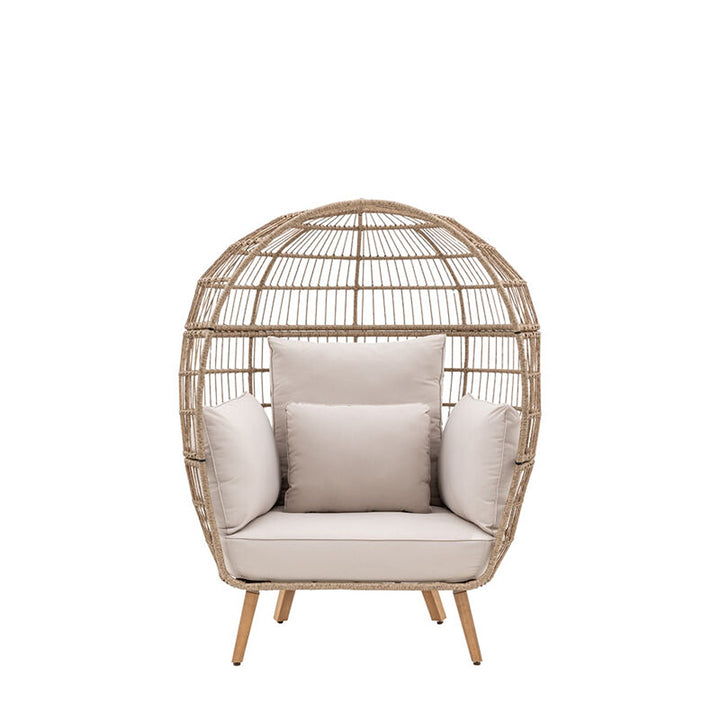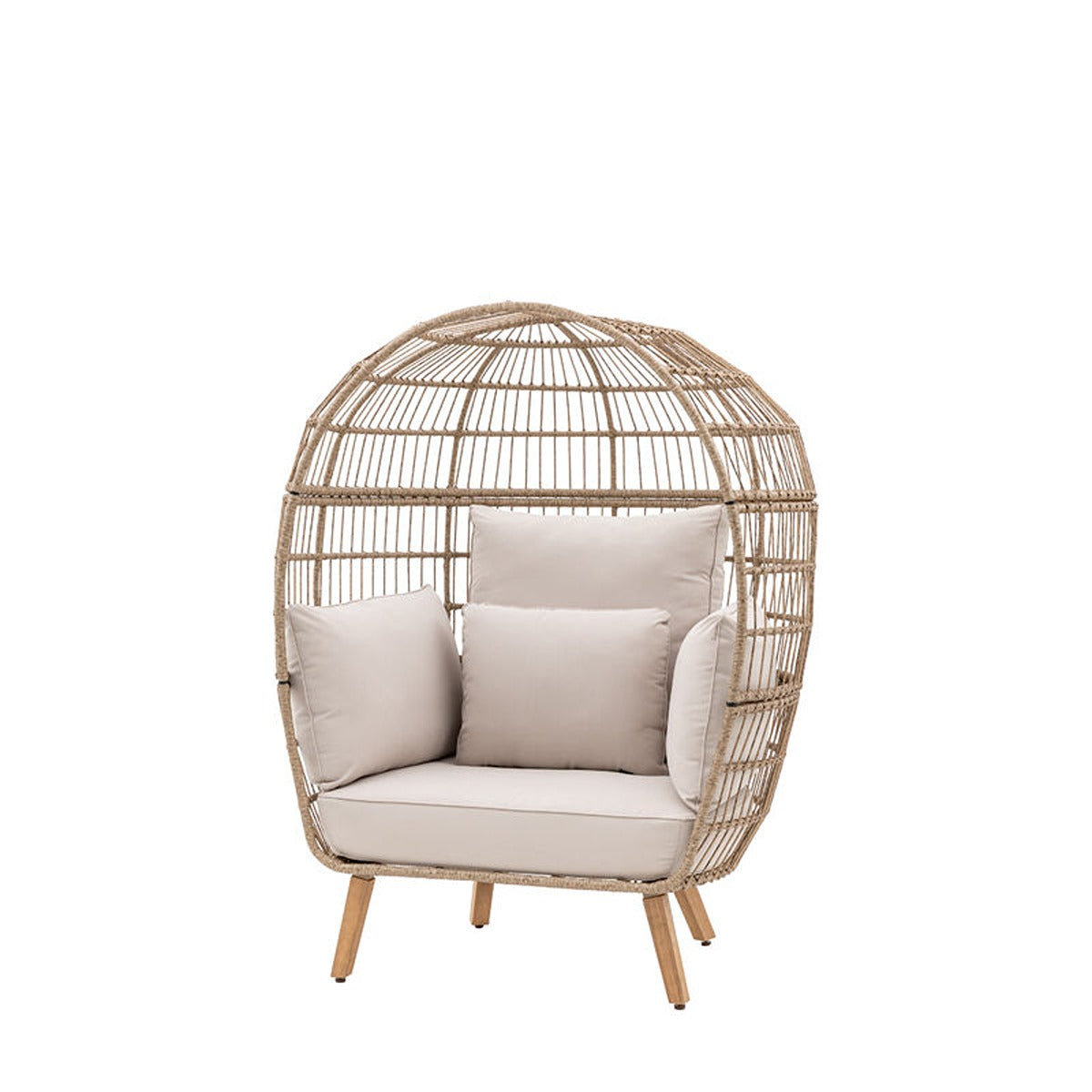 Crafted with a blend of natural wicker and plush cushions, this chair offers a cocoon-like retreat for relaxation and reflection. The unique design adds a touch of whimsy to any patio or garden, while the comfortable cushioned seating ensures hours of blissful relaxation.