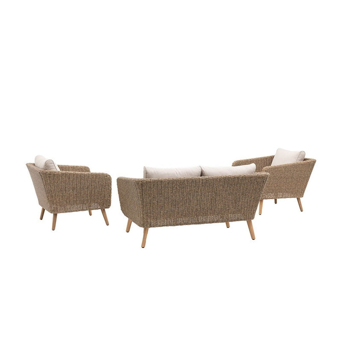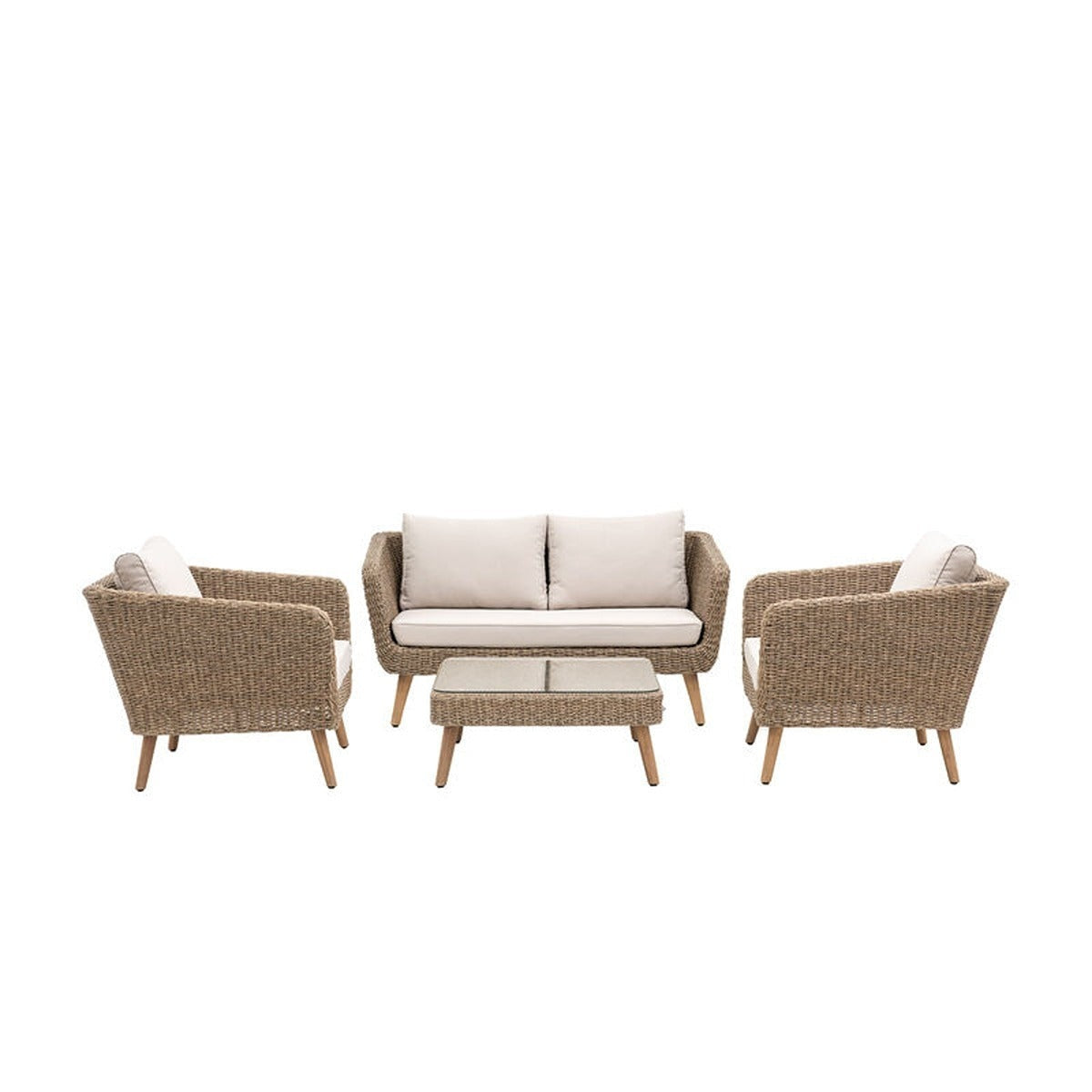 This stylish outdoor seating set blends natural wicker with plush cushions, creating a comfortable and sophisticated look that complements any outdoor decor. The tight, uniform wicker weave ensure durability, while the generously sized cushions offer ample. Whether you're entertaining guests or simply relaxing with family, this set provides a stylish and comfortable space to enjoy the outdoors.