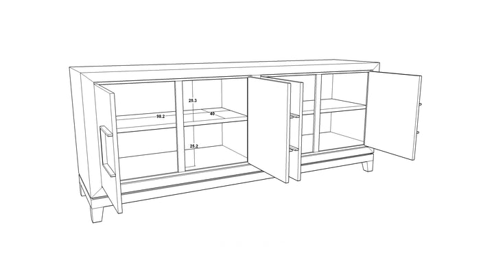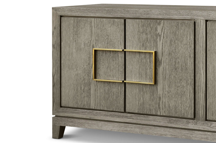 The Lucca 4-Door Sideboard comes in a textured grey/taupe coloured oak veneer and has gold handles in a striking rectangular shaped design. Being one of our most popular ranges, the Lucca Sideboard can help achieve the perfect finish in any home or interior design project and coordinates beautifully with the Lucca Dining Table and Lucca Dining Chair as well as the Lucca Media Unit.