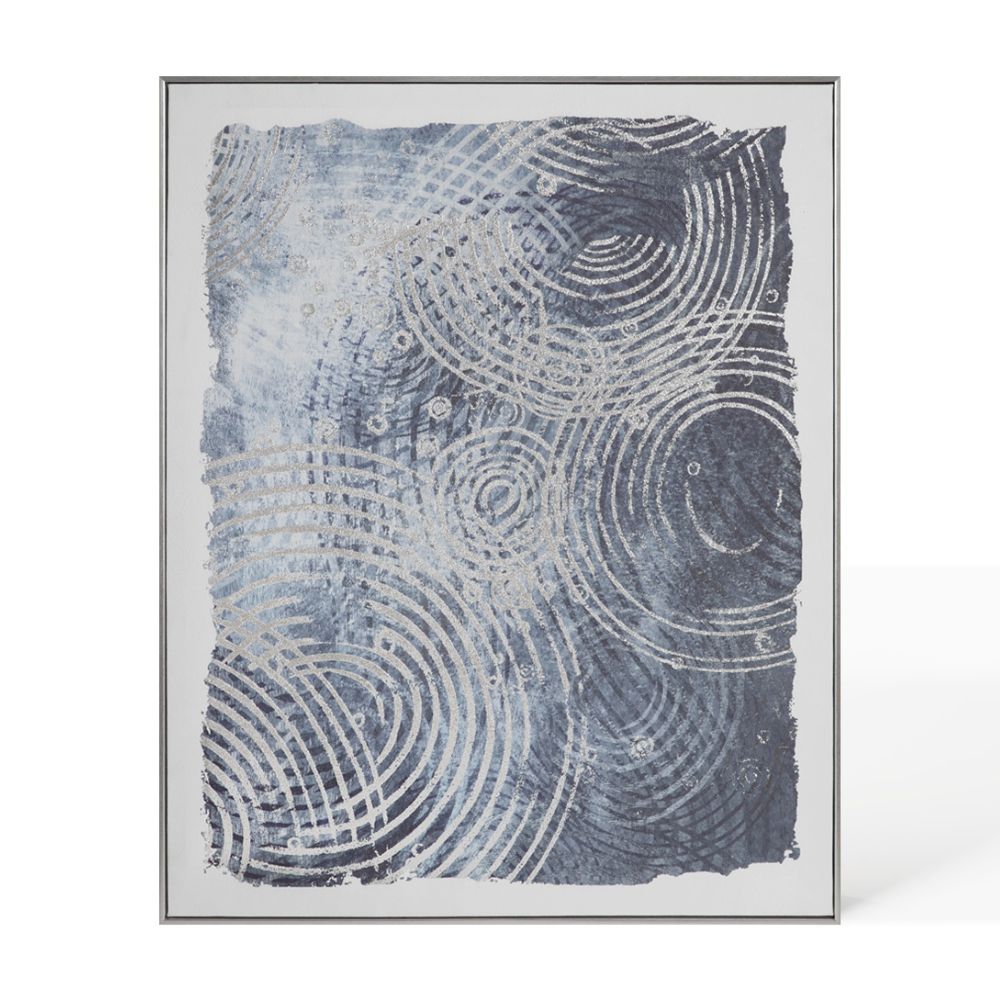 Large abstract artwork. Printed canvas with silver frame and machined silver foil print design. Please note that the dimensions are for the canvas only and exclude frames which typically add an extra 2-4 cm on top.