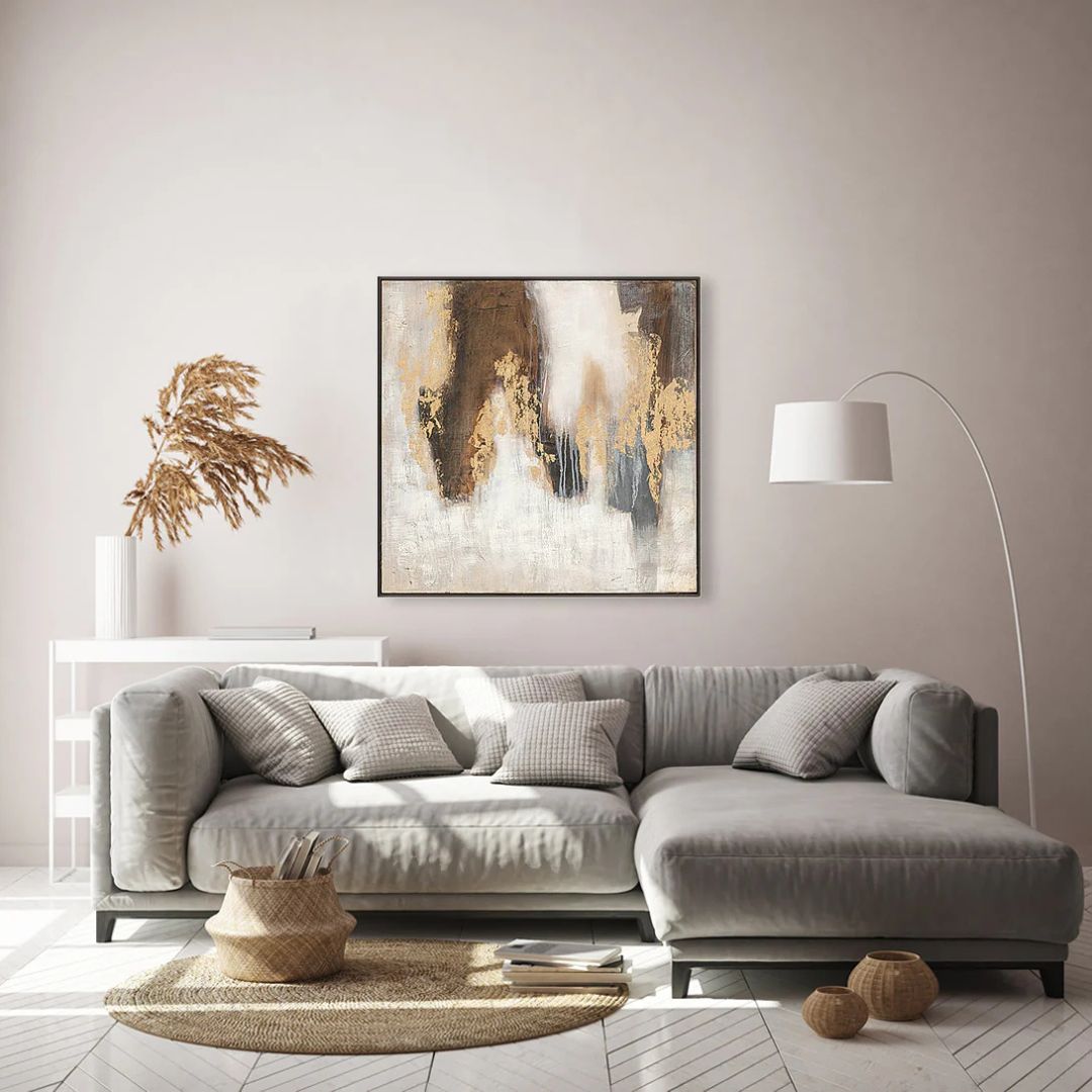 Large abstract painting. Oil on canvas with black frame. This modern abstract painting is hand finished, with no two the same and beautiful palette knife textures. Please note that the dimensions are for the oil on canvas only and exclude frames which typically add an extra 3-6 cm on top.