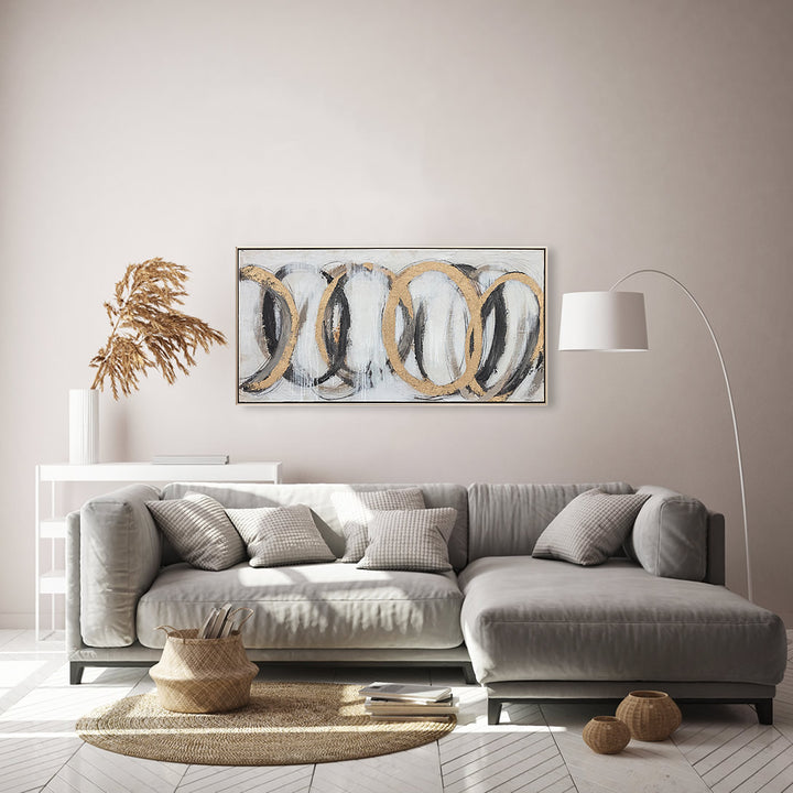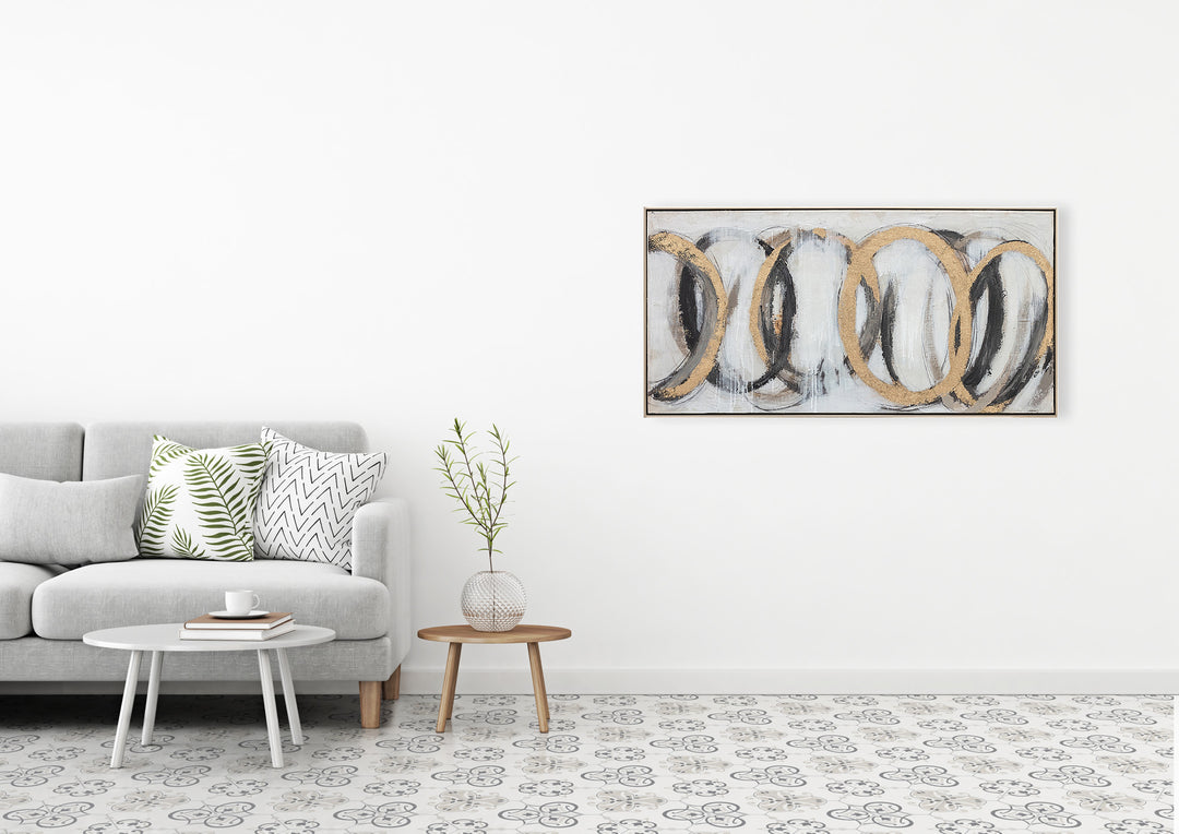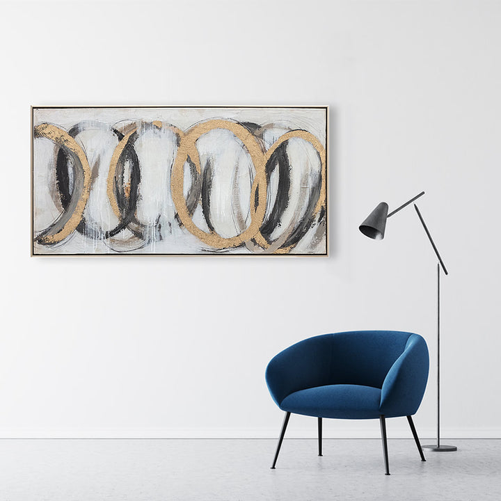 Large abstract painting. Framed oil on canvas. This modern abstract painting is hand finished, with no two the same and beautiful palette knife textures. Please note that the dimensions are for the oil on canvas only and exclude frames which typically add an extra 1-2 cm on top.