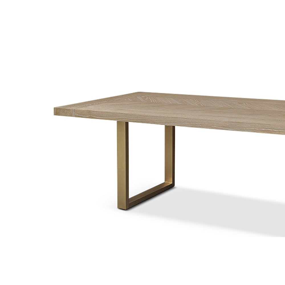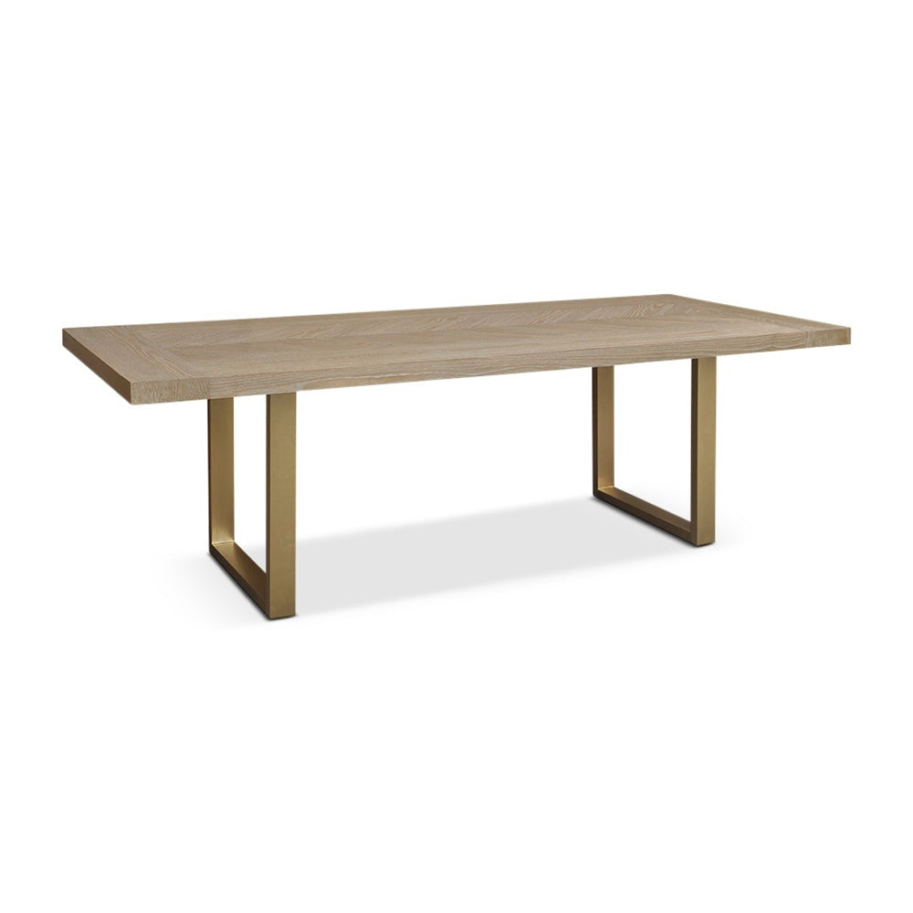 The Valencia Dining Table comes in textured natural grey oak and parquet style design with a striking brass base. The Valencia Dining Table can help you achieve the perfect finish in any home or interior design project.