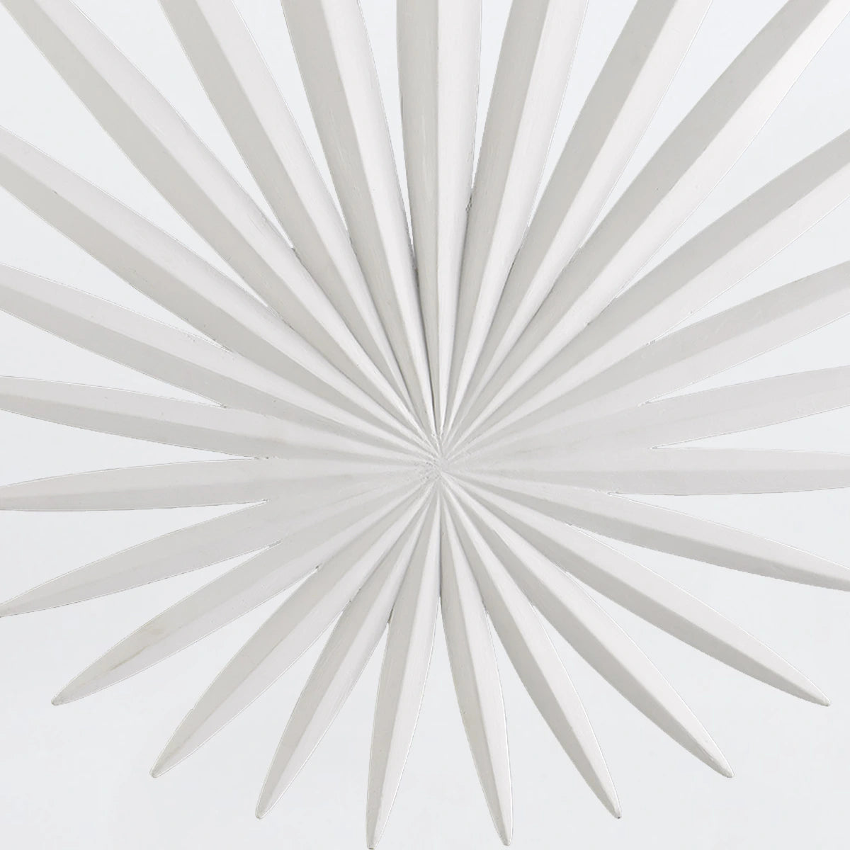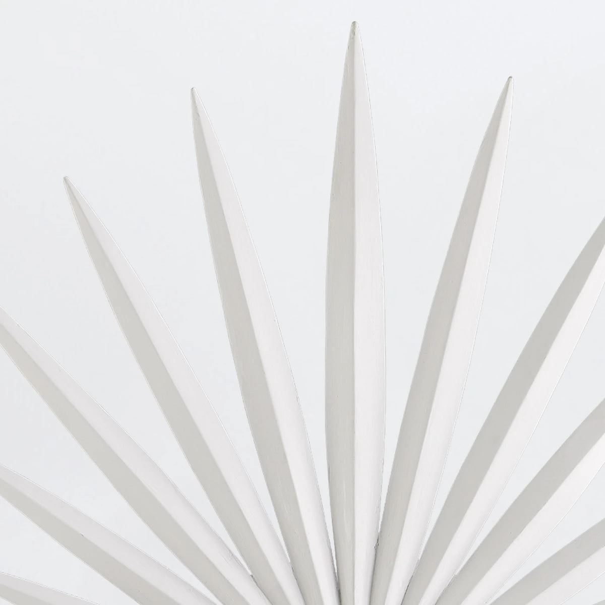 The Bismarkia collection was inspired by the noble Bismarkia palm, with its oversized fronds. Marjorie Skouras, who designed the chandelier, has stayed true to her love of nature for this creation. Her passion for the Yucatan, the surroundings in which she lives and through which she translates the flora and fauna into dynamic products in her studio, shines in these steel fixtures covered in gesso white. The spiky ornamentations that splay around the bulbs bring immediate texture to the white chandelier.