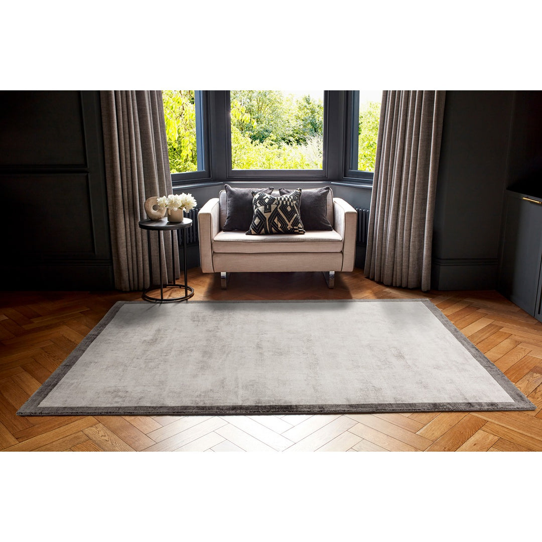 This collection is hand woven and finished with tip shearing detail on viscose yarns. The collection features a two-tone design flowing from a darker slim border into a lighter centre.