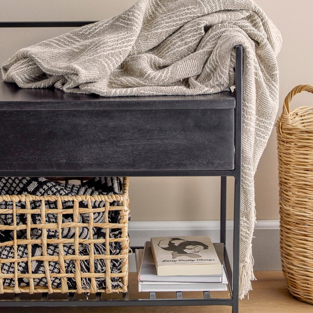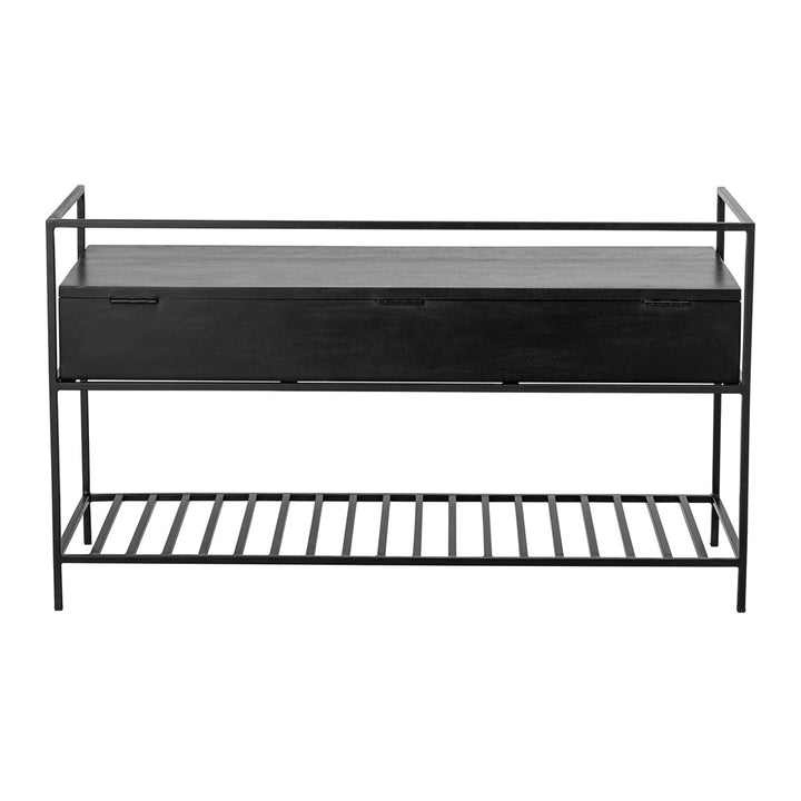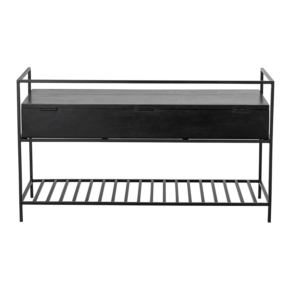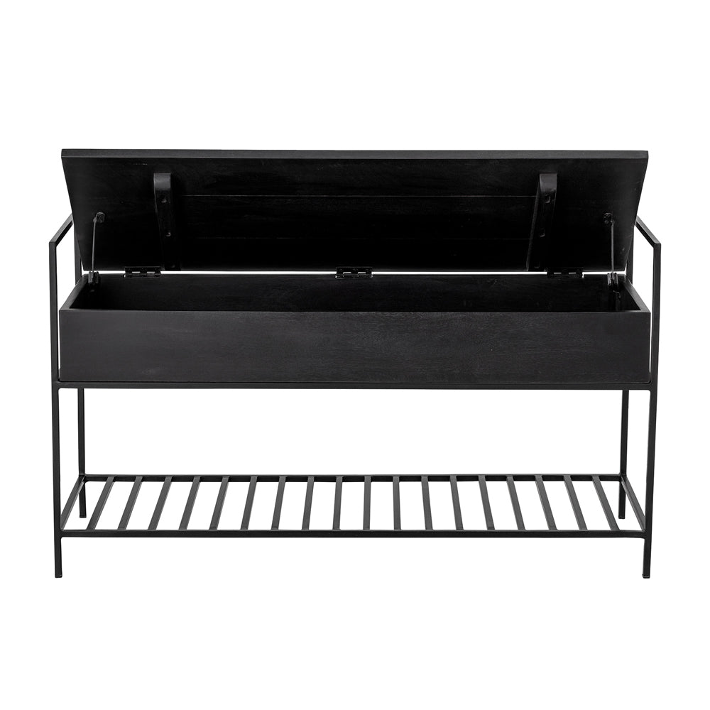 Black mango wooden bench with hidden storage and soft close. Use it in the hall for hats and gloves - it the kids room for storage of toys or in the living room for extra seats and to store magazines.
