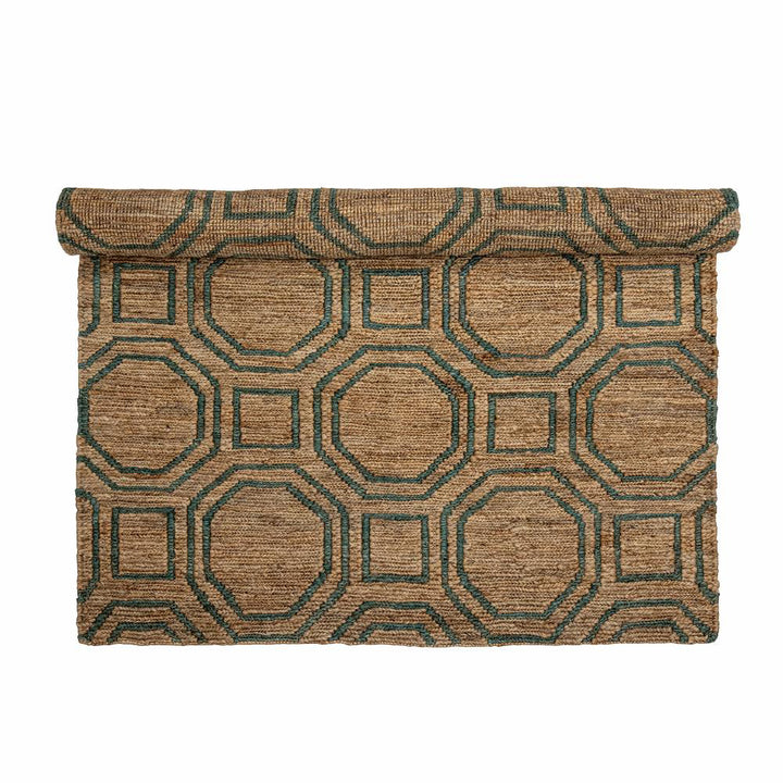 The Fry Rug from Creative Collection is a striking, large and heavy rug made of natural jute. The rug has a beautiful woven design of green colored lines, that gives a very contemporary touch to your home decoration.