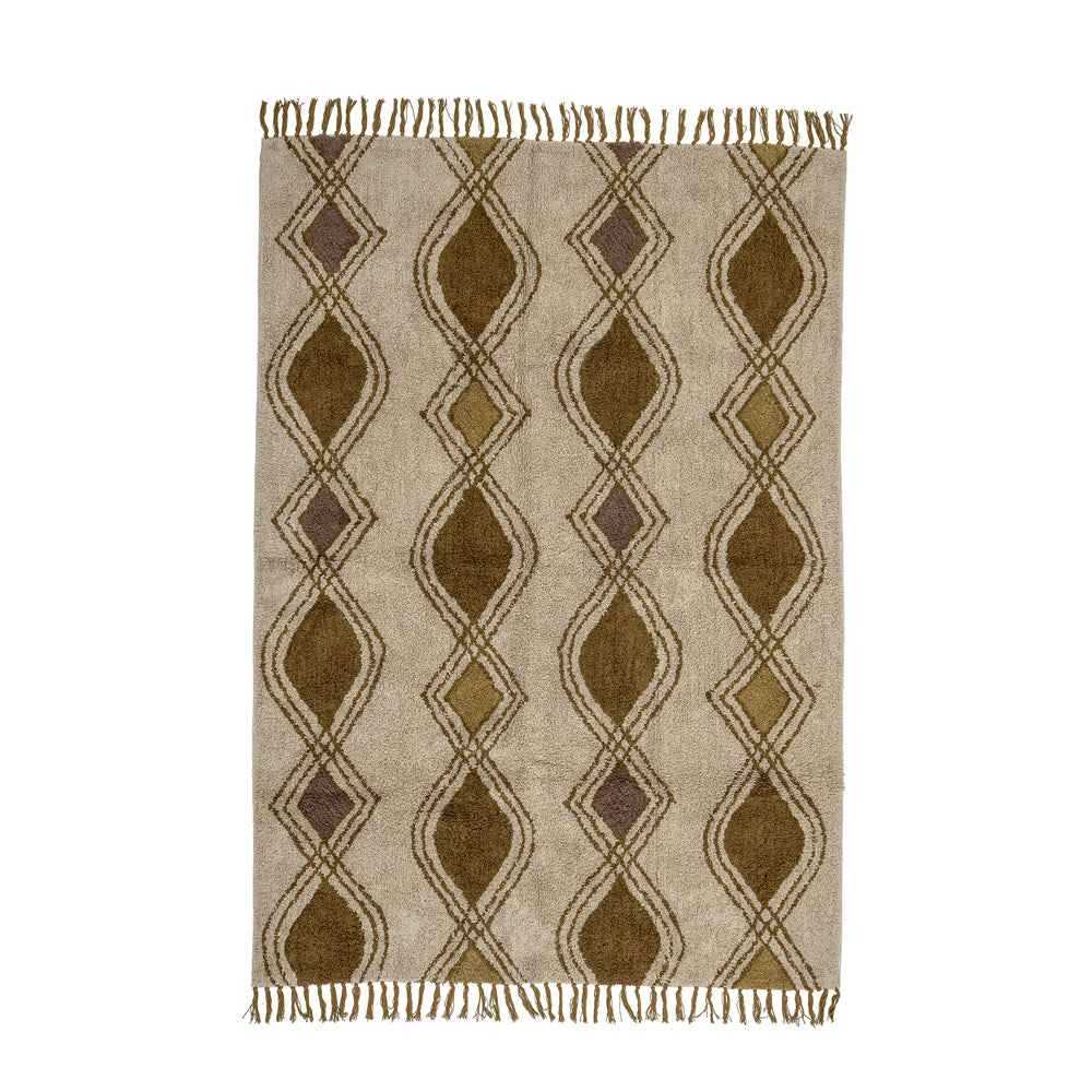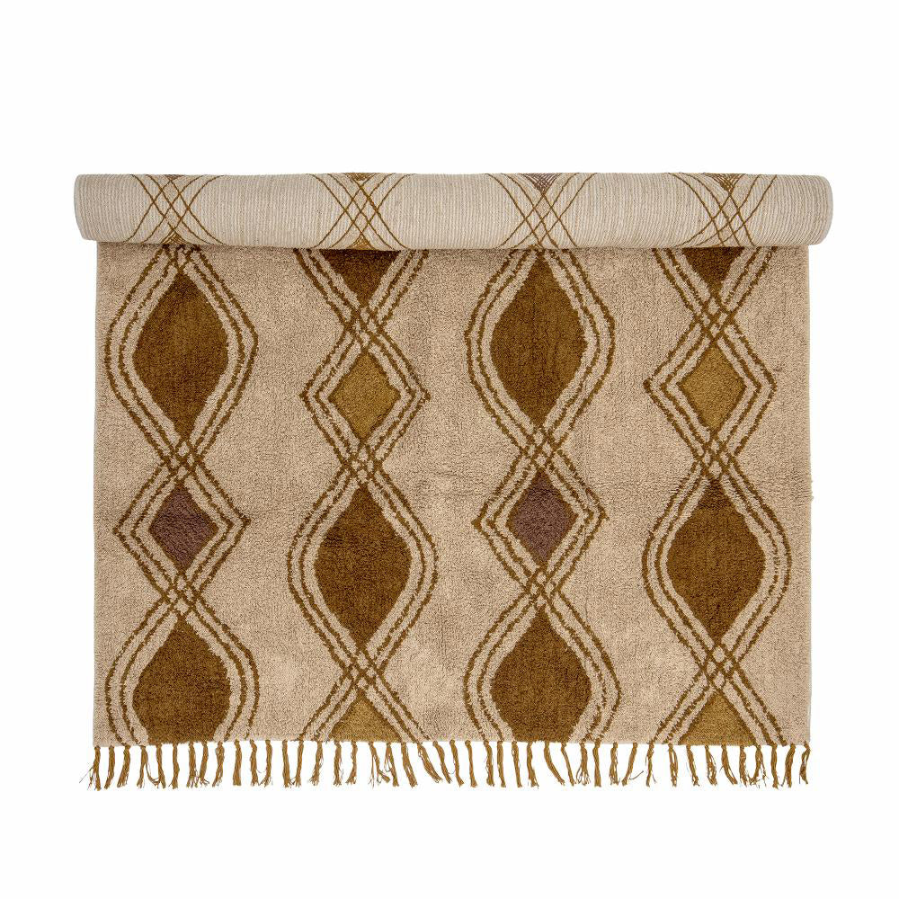 The Isadora Rug by Bloomingville is a wonderful soft rug that brings warmth to the home. The carpet is made of cotton with a tufted technique, with a geometric pattern in warm colors. The rug has fringes in both ends that creates a cozy setting in any room.