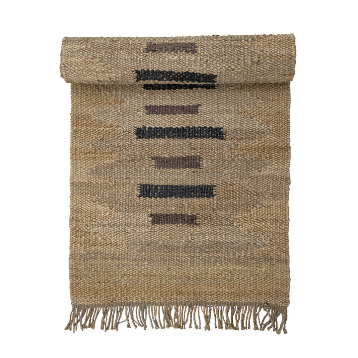 The Vilde Rug by Creative Collection is made of jute with leather details and adds a natural feel to any room decor. The simple yet creative design with the black and brown leather details fits beautifully in any room.