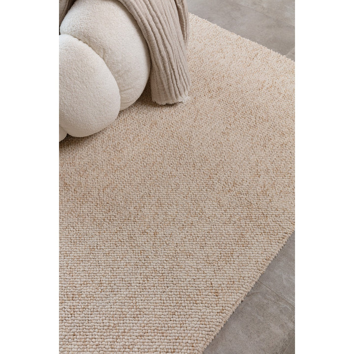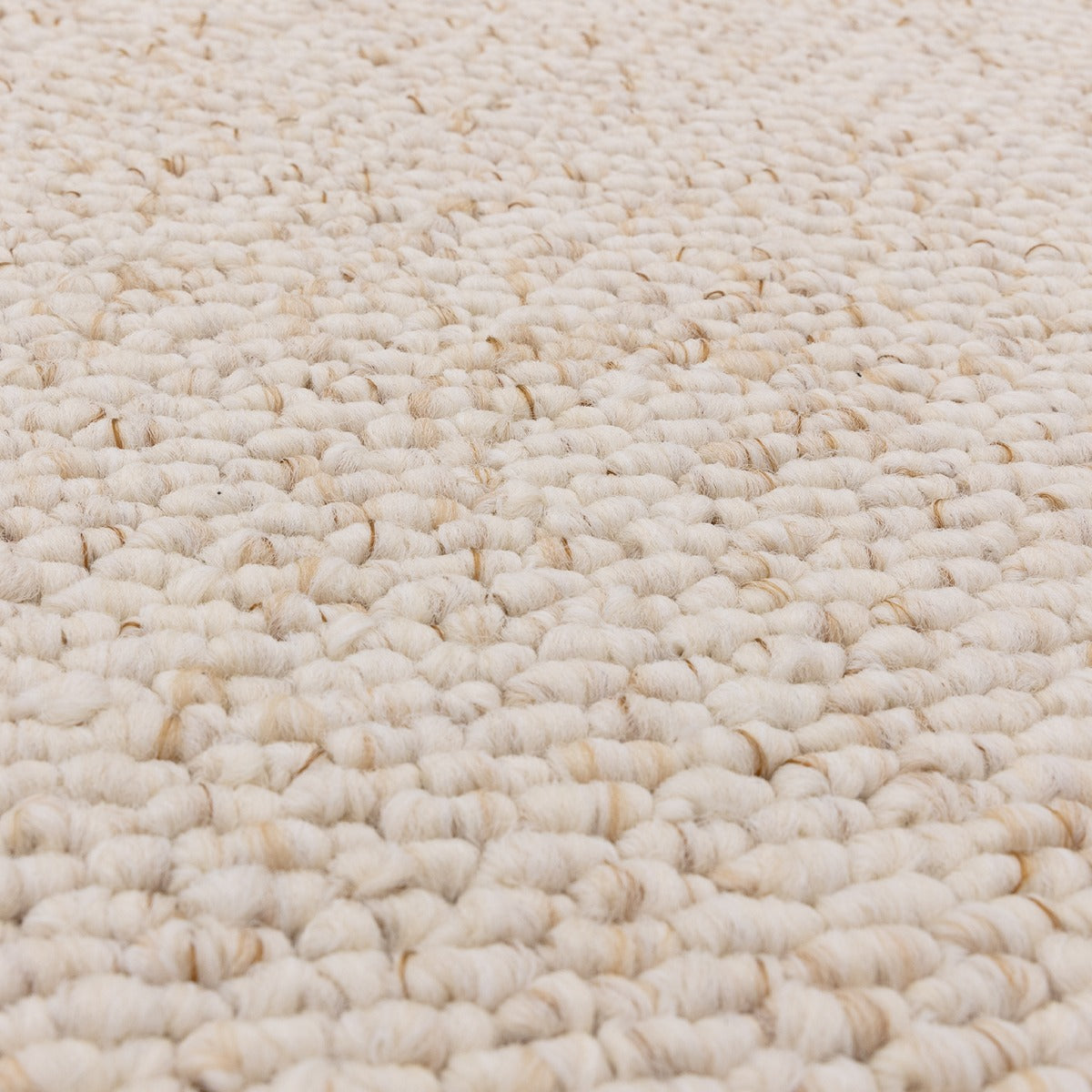 Crafted in warm earthy tones to repilcate the natural look of undyed wool, this bobble rug evokes a tranquil elegance. Made from space dyed polypropylene with a light weight felt backing this rug is perfectly suited for machine washing.