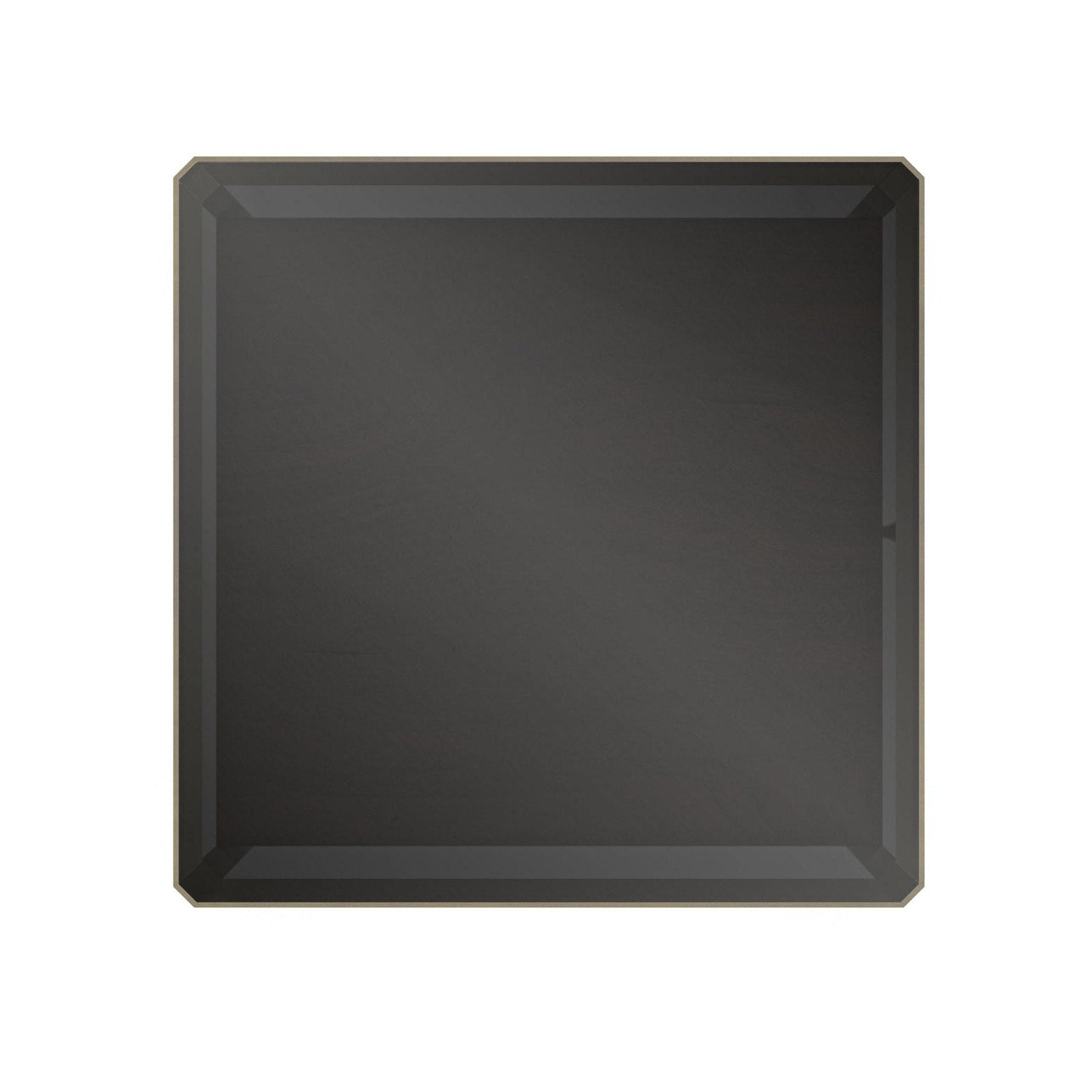 An alluring mix of materials makes for a striking end table, well-sized for styling alongside sofas and chairs. Clean lines and an architectural design are accentuated by a sultry smoked glass top and metal frame in a Brushed Antique Brass finish. Floating within its slender frame, a drawer box in Rich Walnut adds an organic element, with space for stashing small items like cocktail coasters and candle snuffers. Tall metal ferrules dress up the look with a classic detail in a Deep Bronze finish. Smoked glass top. Metal frame in Brushed Antique Brass. Drawer box in Rich Walnut with side guides. Drawer is finished on the back side. Metal ferrules in Deep Bronze. Hardware knob in Whisper of Gold.