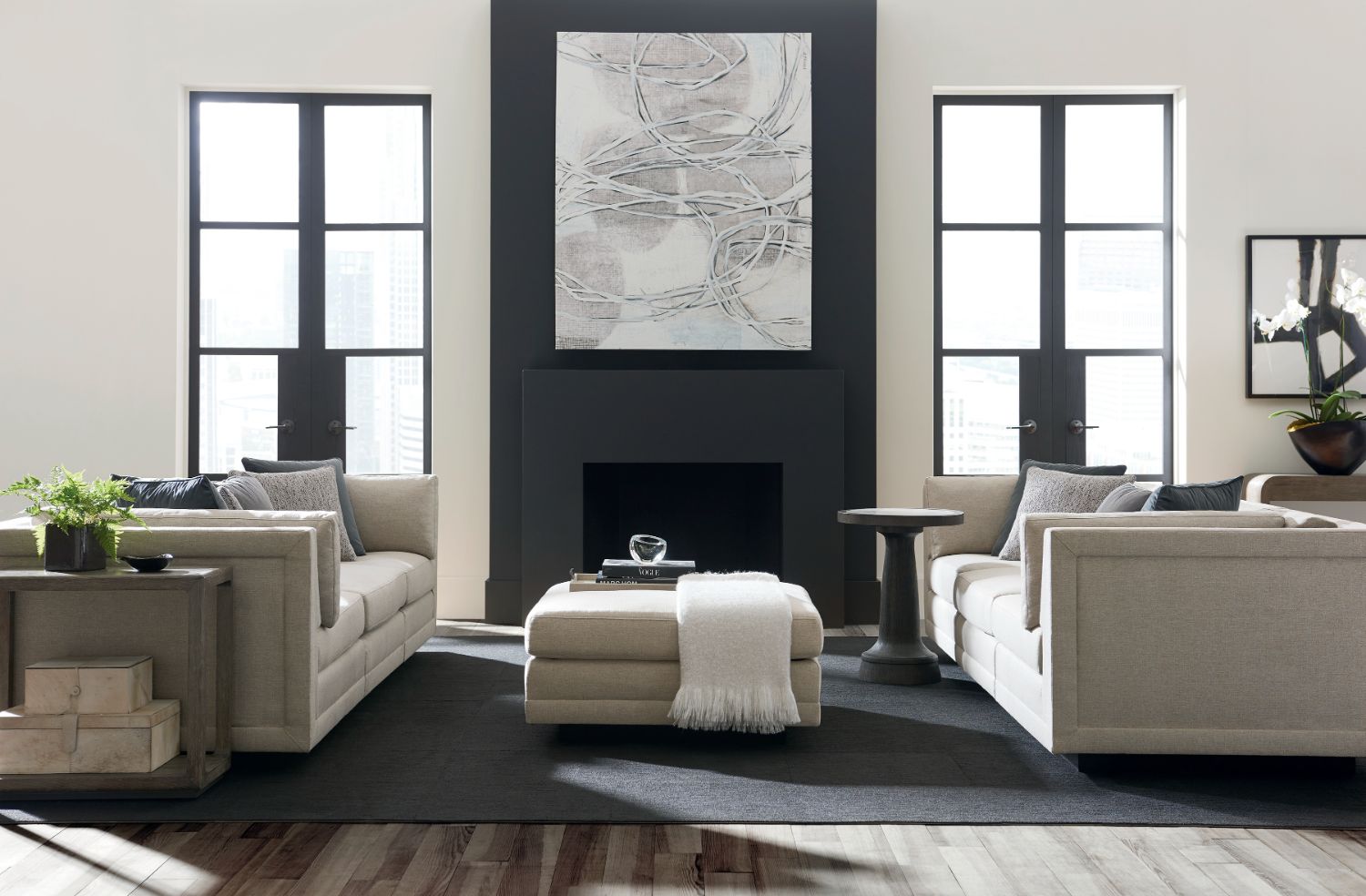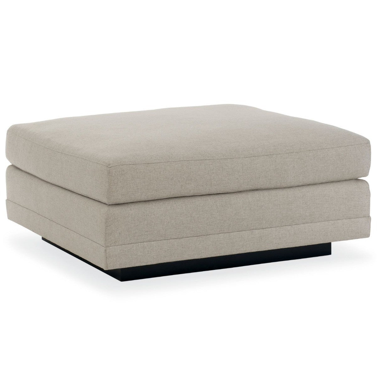 Casually elegant, this fully upholstered ottoman is designed to complement the Modern Fusion sectional sofa. Perfectly sized, it's tailored to perfection. A recessed wood plinth base in Simply Black completes this piece distinctive aesthetic style. Husk LimestoneRecessed wood plinth base.