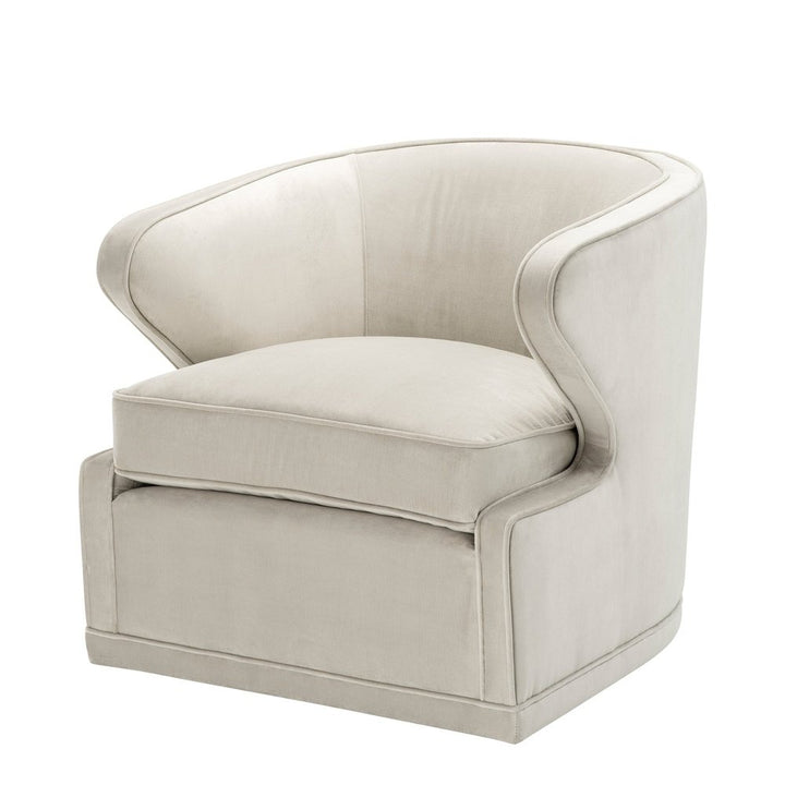 Combining exquisite craftsmanship and effortless style, the Eichholtz chair in grey will be a stunning addition to your home. Perfect in living areas, bedrooms or even on landings, the vintage Dorset chair is designed to complement your décor. The Pebble Grey upholstery is both elegant and minimalist, thus ensuring the Eichholtz Dorset Pebble Chair in grey is perfectly suited to traditional and contemporary styles. Featuring a swivel base for added functionality, the Dorset chair offers unparalleled comfort. Ideal as a statement piece or as the ultimate addition to a nook or hideaway, the outstanding quality and design will enhance any room. Featuring a pebble grey upholstery with piping, this beautiful retro design accent chair combines a comfortable seat with a swivel base.