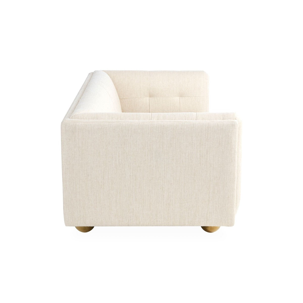 Our spin on the classic Chesterfield, sized for smaller spaces. We took the original profile—clubby comfort, tailored tufting—and made it modern with a pared down silhouette. The finishing touch: oversized (and ultra-glam) brass orbs in place of traditional wooden bun feet. The perfect balance of formal and fresh, its loungey depth and neutral linen or navy upholstery make it a must-have for any apartment, pied-à-terre, or petite room. 21.6 cm spaced tufting