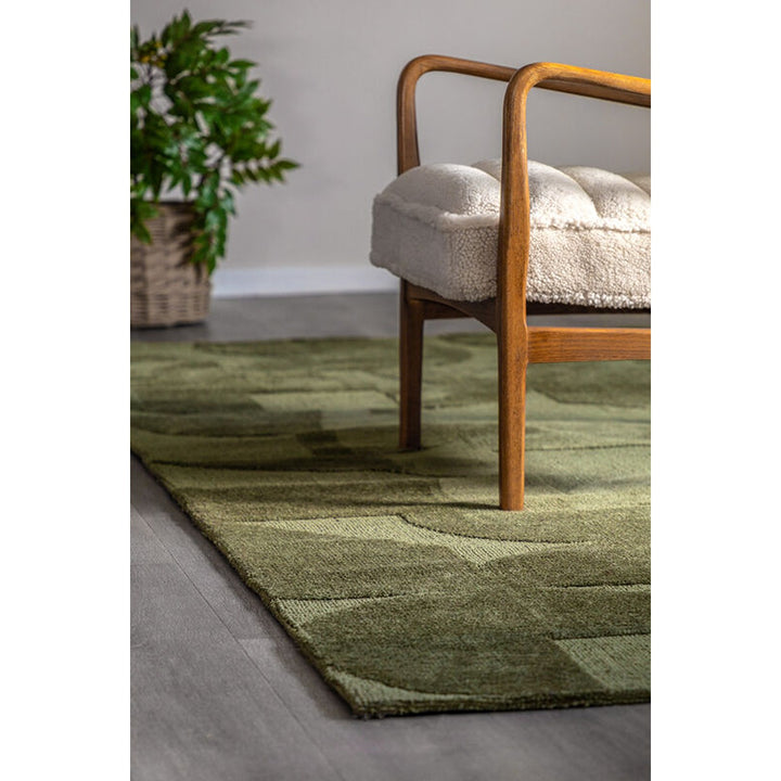Add wow factor to any room with this stand out rug. With a bold geometric design in olive green, this is a statement choice for your room.