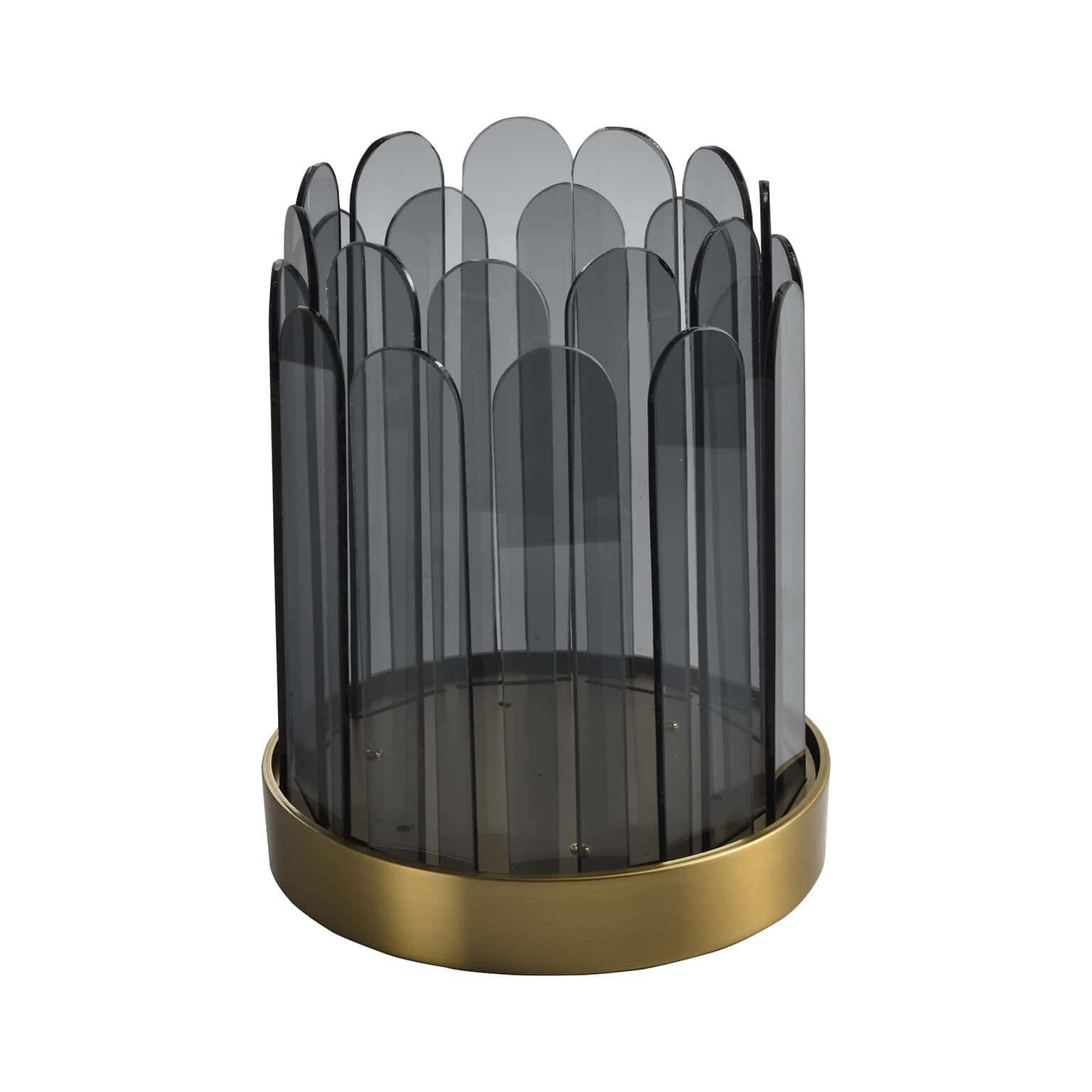The Daisey Hurricaine Lantern Small in Gold is a stunning addition to any home decor. This lantern is perfect for adding a touch of elegance and warmth to any room. The intricate design of the lantern features delicate daisies, adding a charming and whimsical touch. The gold finish adds a touch of luxury and sophistication, making it a perfect accent piece for any space. The small size of the lantern makes it versatile and easy to place on a shelf, table, or mantel. Illuminate your home with the Daisey Hurricaine Lantern Small in Gold and create a cozy and inviting atmosphere.