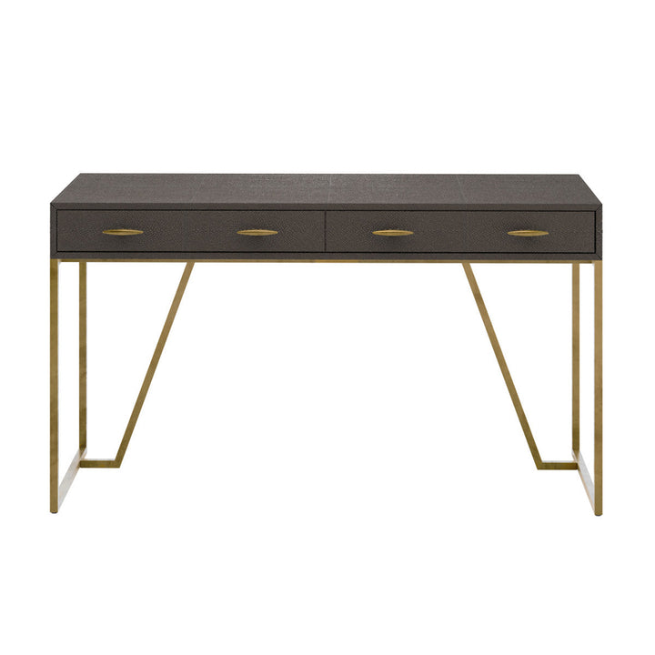 The DI Designs Hampton Desk in Brown Shagreen combines modern elegance with practical functionality. This stylish piece offers ample workspace, ideal for any home office or living room. Its rich brown shagreen finish and sophisticated design make it a timeless addition to your decor, ensuring both productivity and elegance.