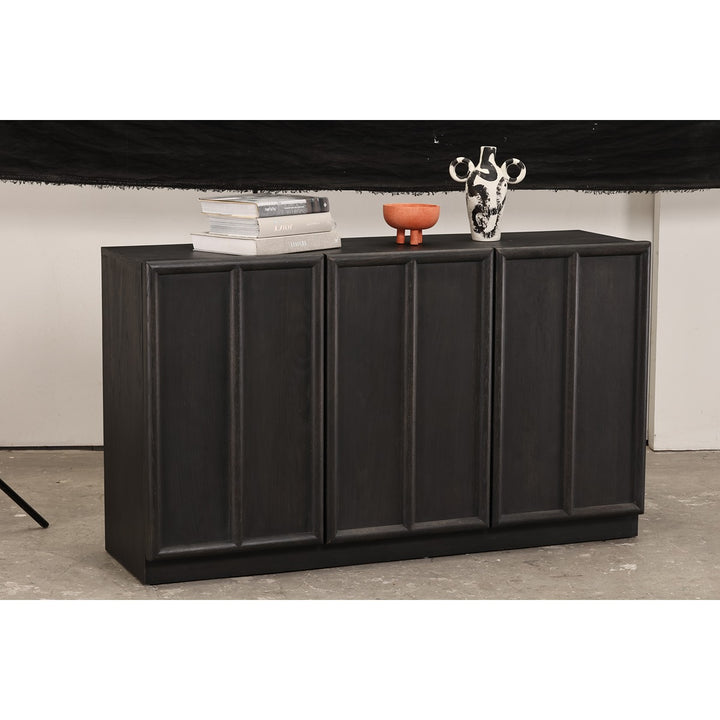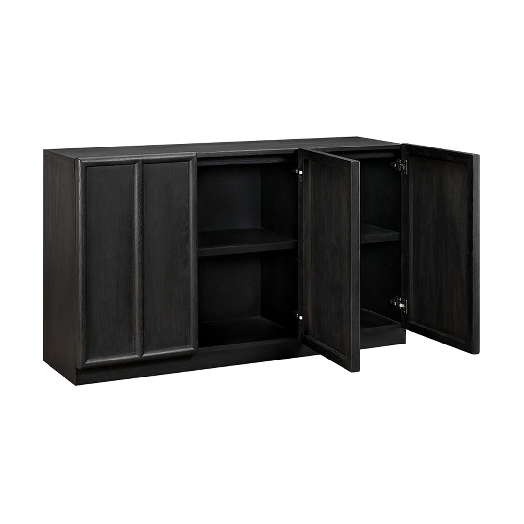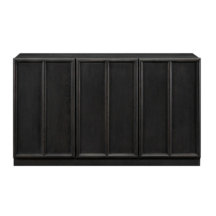 This sideboard brings both functionality and style to your dining room. Crafted from oak, it showcases the natural beauty of wood grain while offering ample storage space for your dining essentials. The sleek black finish adds a modern touch, making it a versatile piece that complements various décor styles. With spacious cabinets and drawers, it helps keep your dining area organized and clutter-free. The sturdy construction ensures durability, allowing it to withstand the demands of daily use. Whether used to store dishes, linens, or serving ware, this sideboard enhances your dining experience by combining practicality with elegant design.