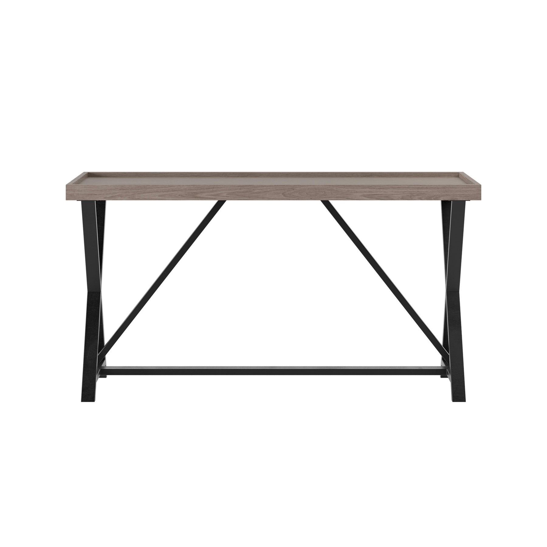 Standing at a 50cm depth from the wall, this aged oak and oak veneer console table with its black metal, crossing legs and visible grain is a simple but elegant addition that will look great with any room's décor. Add your own design to this piece when you decorate it with your own items.