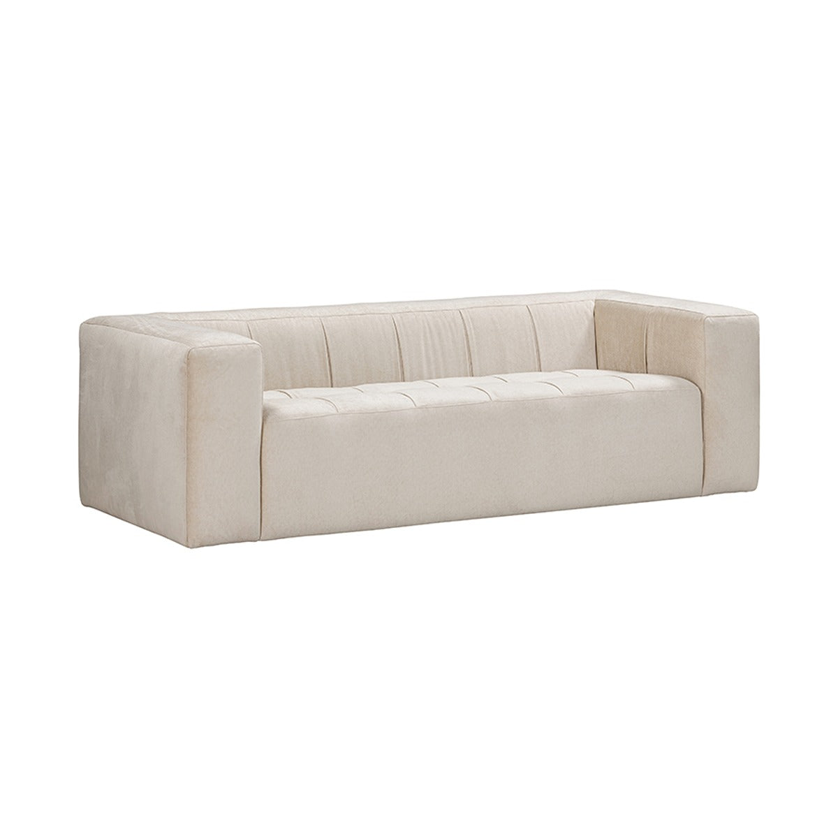 Experience comfort and style with this off-white upholstered sofa designed to elevate your living room. The neutral cream color provides a versatile backdrop that pairs well with a wide range of color palettes and décor styles. Featuring plush cushions and generous seating, it invites relaxation and socializing. The high-quality upholstery is both soft and durable, ensuring it withstands daily use while maintaining its elegant appearance. Its timeless design makes it a perfect choice for creating a cozy and inviting atmosphere in your home. Whether you're entertaining guests or enjoying a quiet evening, this sofa enhances your living space with comfort and sophistication.