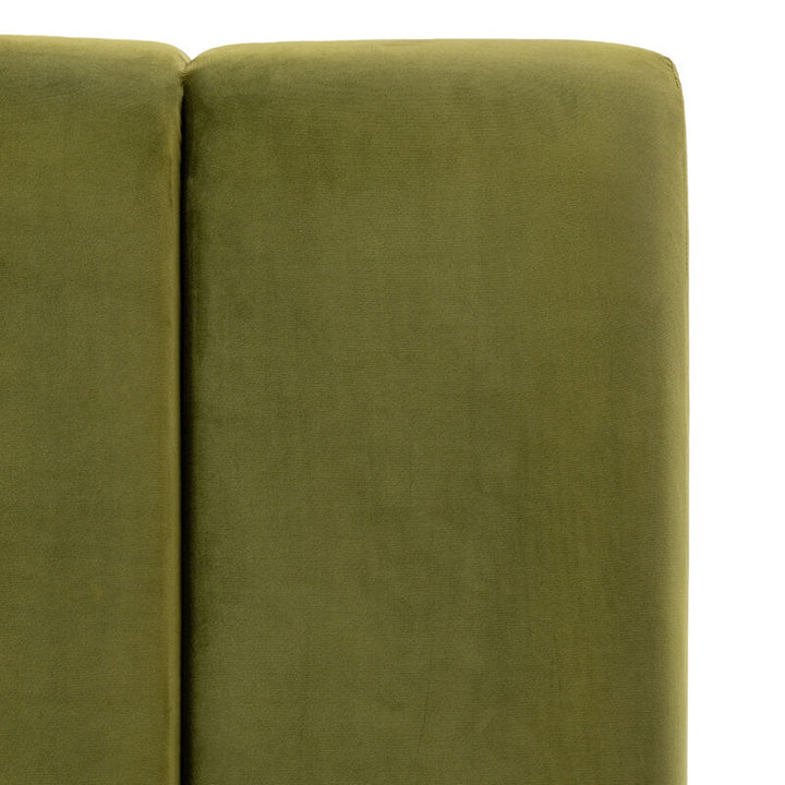 Contemporary elegance meets luxurious comfort. The rich green padded panel headboard adds sophistication and texture, creating a bold focal point and a cosy backdrop for restful nights.