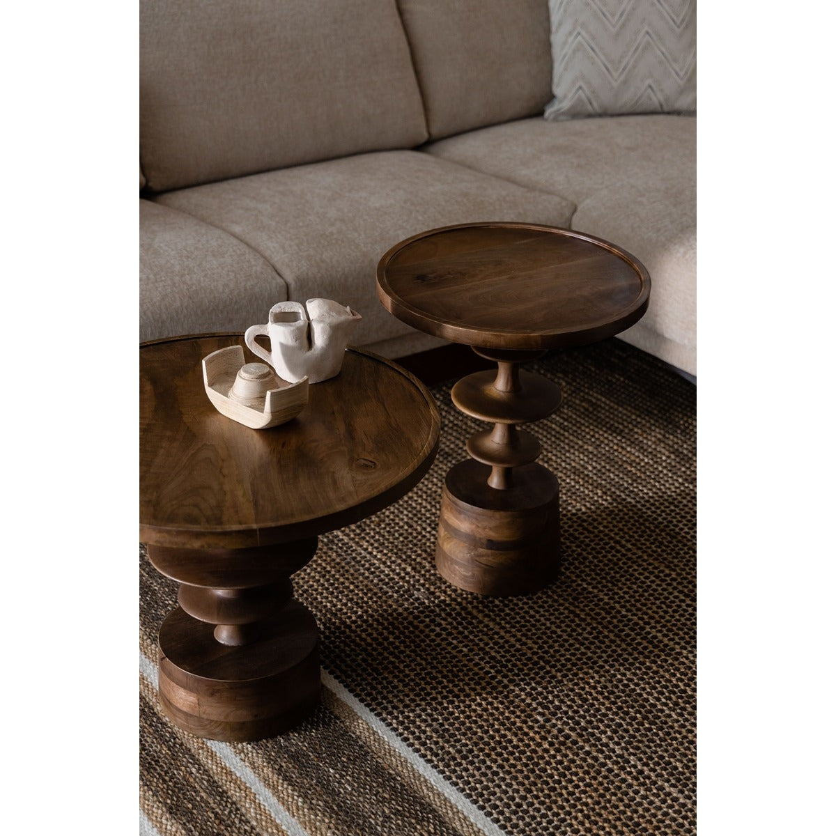 Create an atmospheric space with the Dutchbone Cath series, crafted from solid mango wood with a walnut-coloured finish. Its Mid-Century Modern design, featuring round, organic shapes, adds a warm vintage feel to any living or dining area.