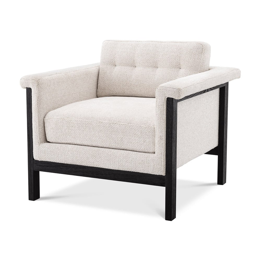 Enjoy the bold look of the Allison Chair. With its black frame, hard angles and symmetry, this luxury accent chair with a soft-touch Lyssa off-white upholstery is a must-have for Art Deco lovers.