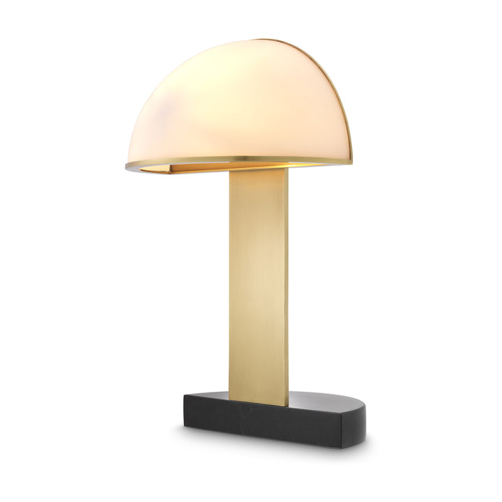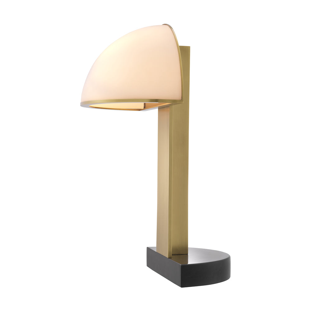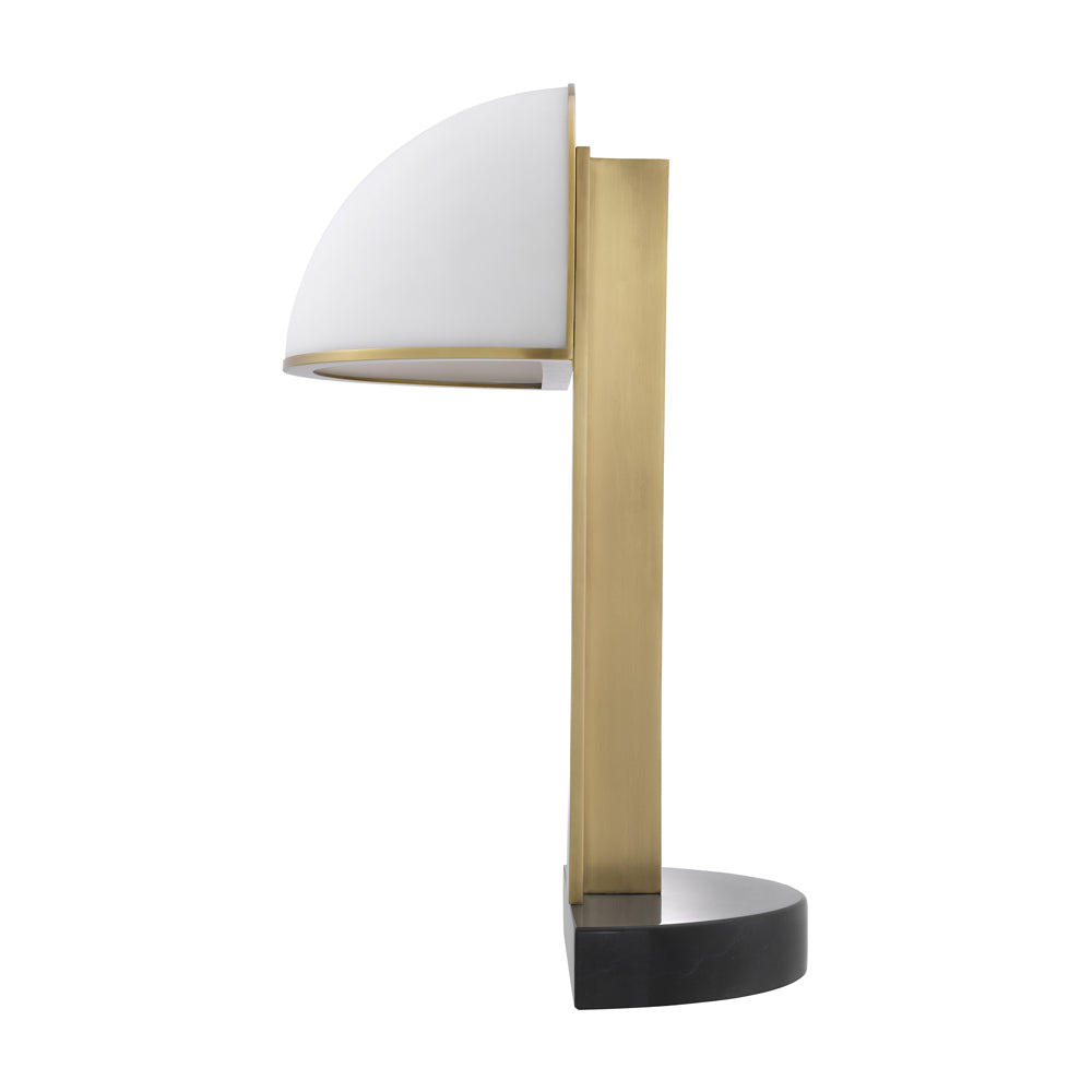 Simple yet incredibly stylish, the Art Deco inspired Archer Table Lamp is ideal for any interior looking for an understated hint of elegance and practicality. Featuring an extraordinary design, it has an antique brass body that sits on a semi-circular black marble base and a white glass semi-circular lampshade.