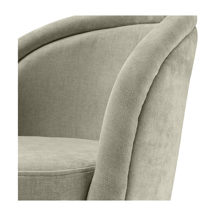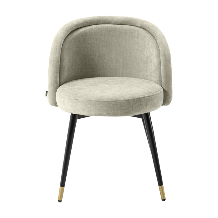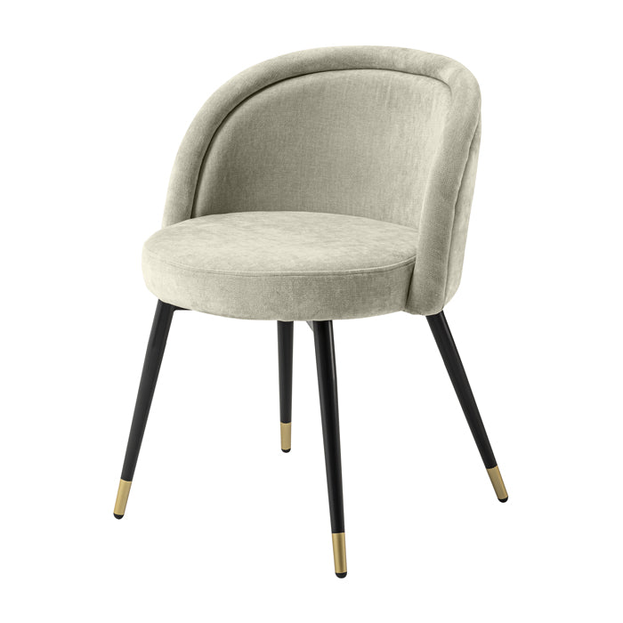 The tapered black legs are finished with brass caps and the Clarck sand upholstery stylishly rounds off the retro look.