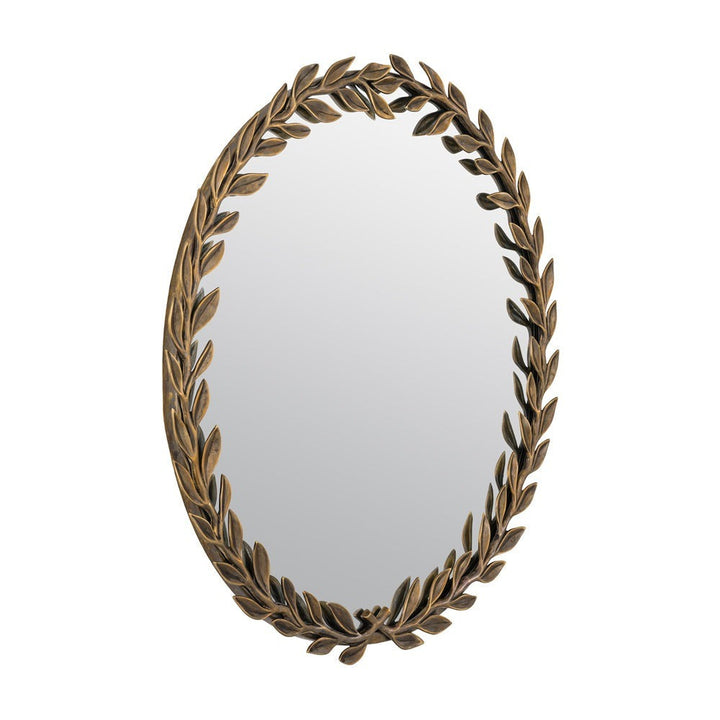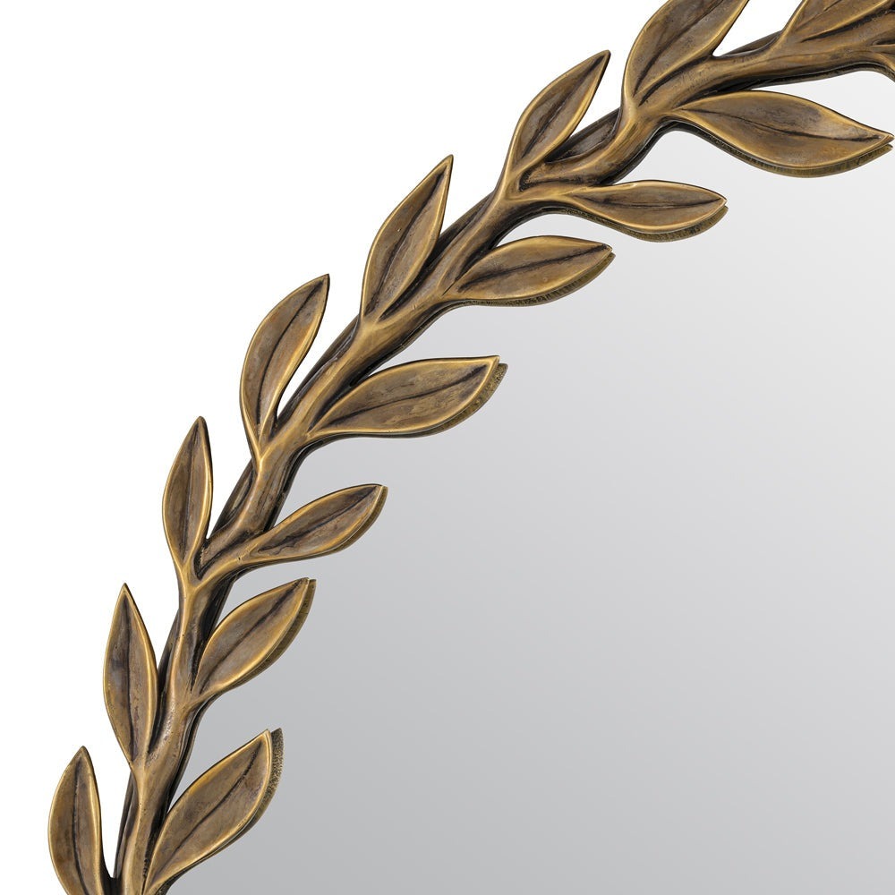 Showcasing a wreath of leaves to create a botanical look, the vintage brass Duras Mirror is a true piece of wall art. This decorative mirror is an ideal accent piece and a great solution to brighten up your space or make it appear bigger, since it helps bounce light around your room.