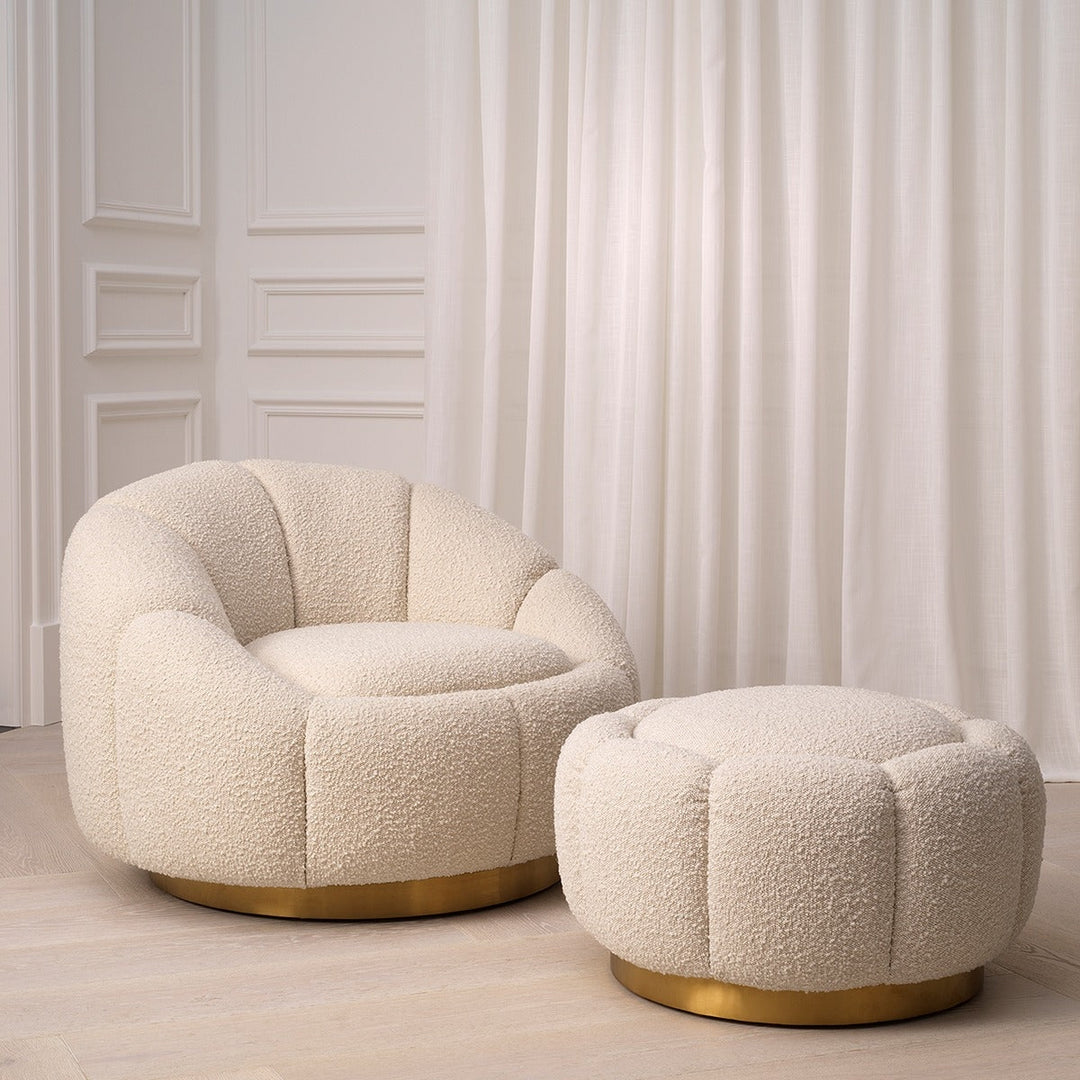 Designed with organic shapes in mind, and provided with a Bouclé cream upholstery, Sofa Inger will give your interior a natural look and feel. The curvilinear shape is accentuated by deep stitching, whilst the cream-coloured fabric is underlined by a brushed brass base. Perfect for pairing with other pieces from our opulent Inger series.