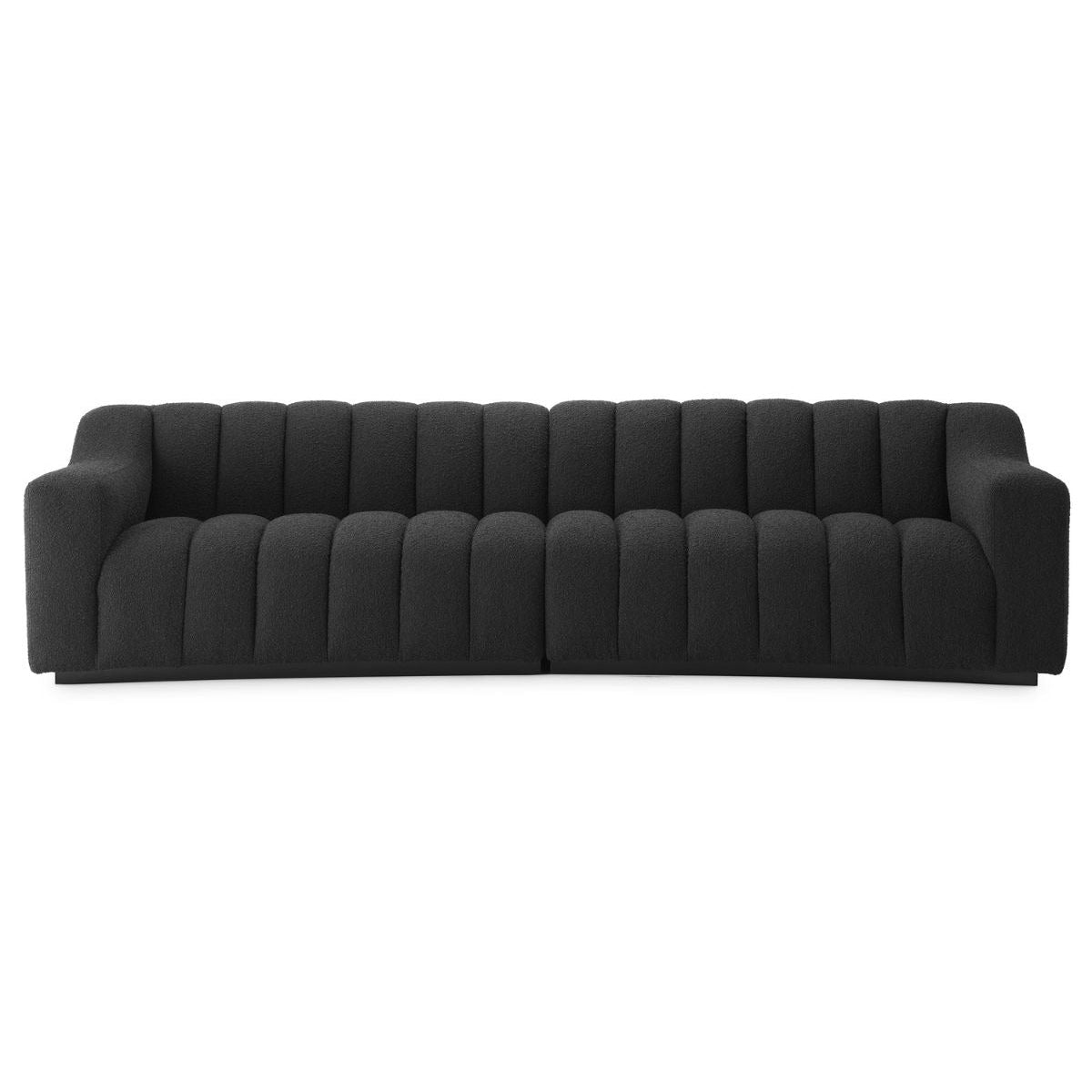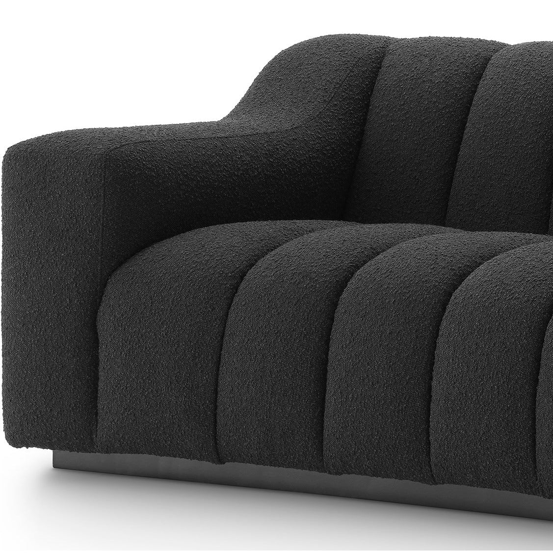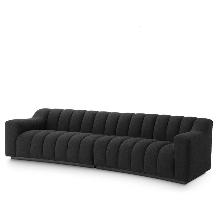 Sofa Kelly will bring lots of charm and warmth to your living room with its black bouclé upholstery. Featuring a gently curved design and deep channel stitching, this generous sofa will offer you a very comfortable seat.