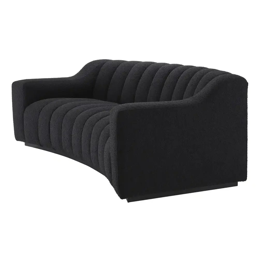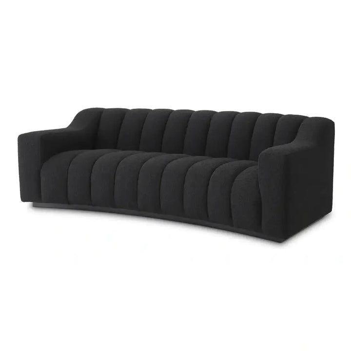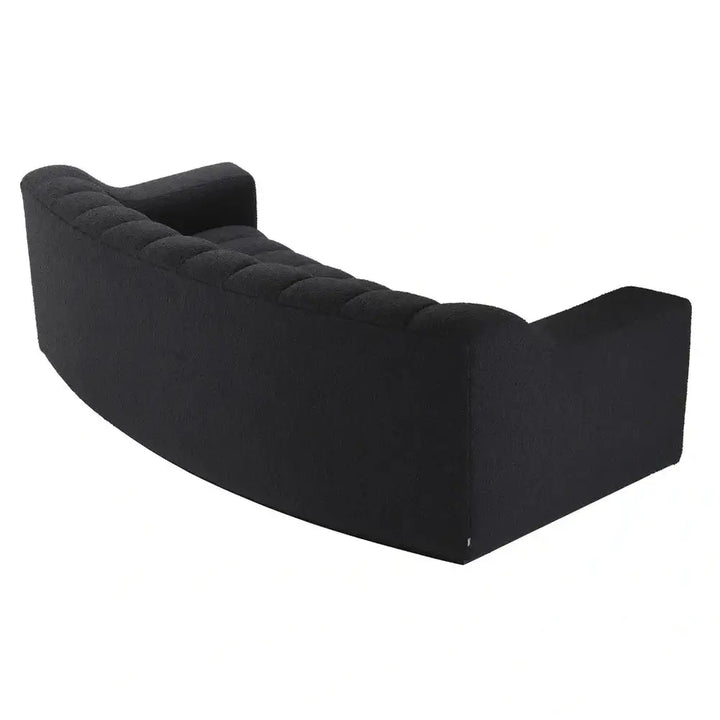 Upholstered in black bouclé, Sofa Kelly will bring lots of charm and warmth to your living room. With its gently curved design and deep channel stitching, this lovely sofa will offer you a very comfortable seat. Finish/Colour: Black