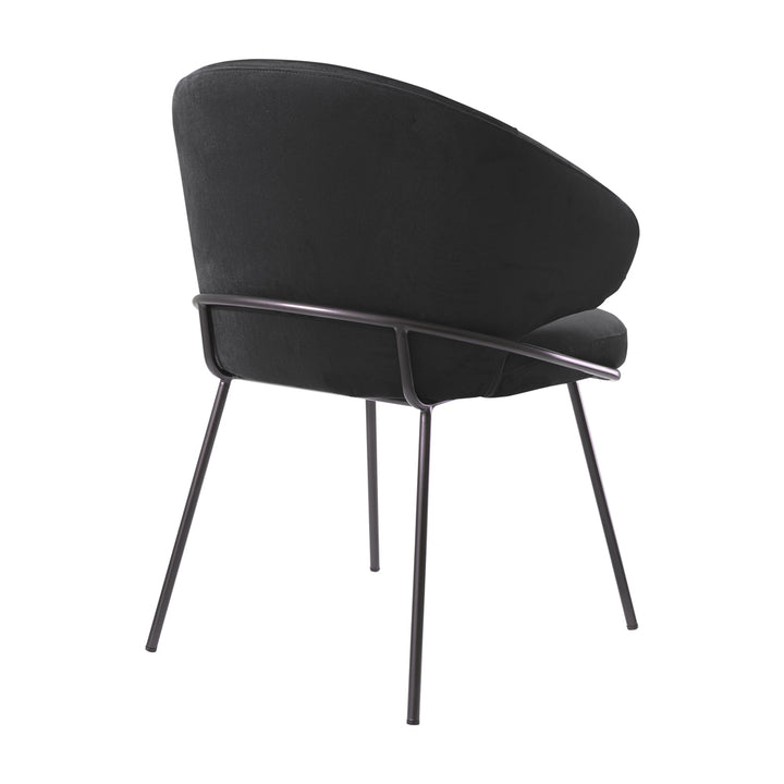 Host your guests in style with the Kinley Dining Chair. With a bent backrest and a seat in a Roche black velvet upholstery and bronze finish legs, this eye-catching armchair exudes Mid-Century Modern flair.
