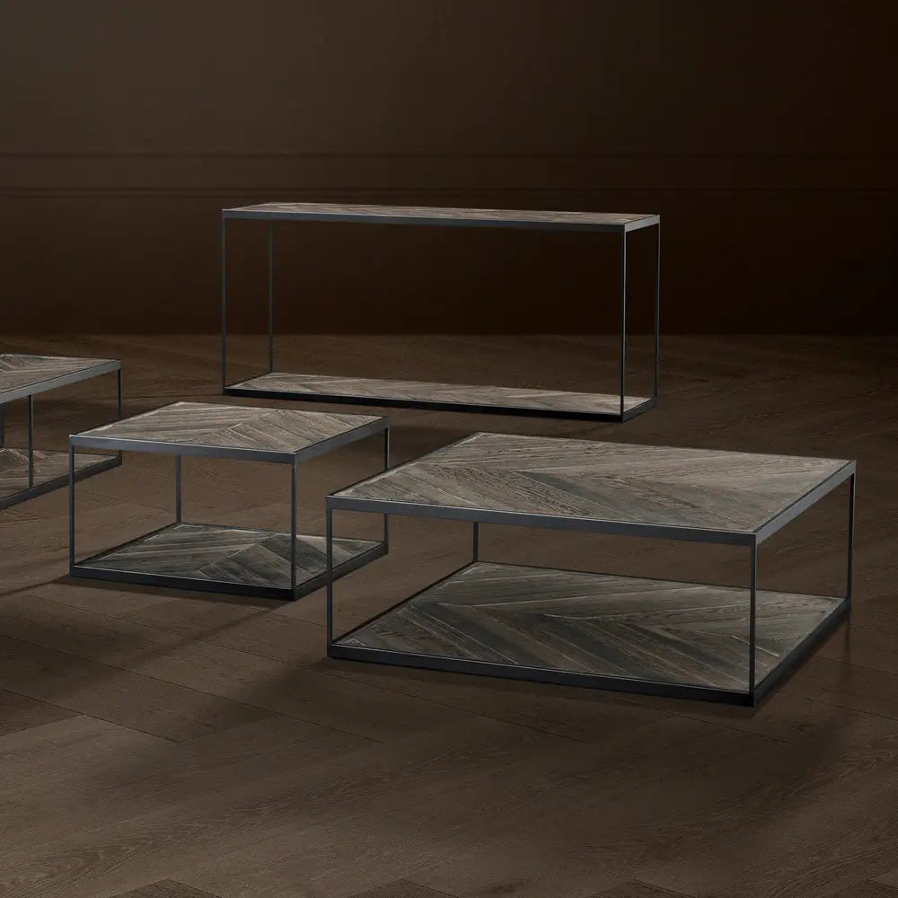 Allow your favourite books, glossy magazines, and decorative objects to shine on the La Varenne Coffee Table. This stylish square coffee table comprises a zinc finished steel frame with an weathered oak table top that nestles an equally proportioned low shelf surface below. Mix and match with design furniture and luxury lighting from the Eichholtz collection for an eclectic interior style.