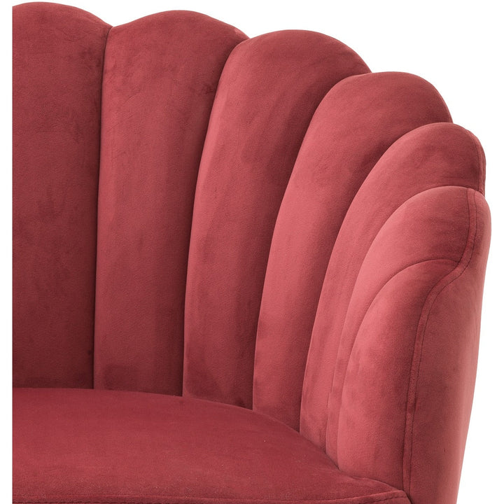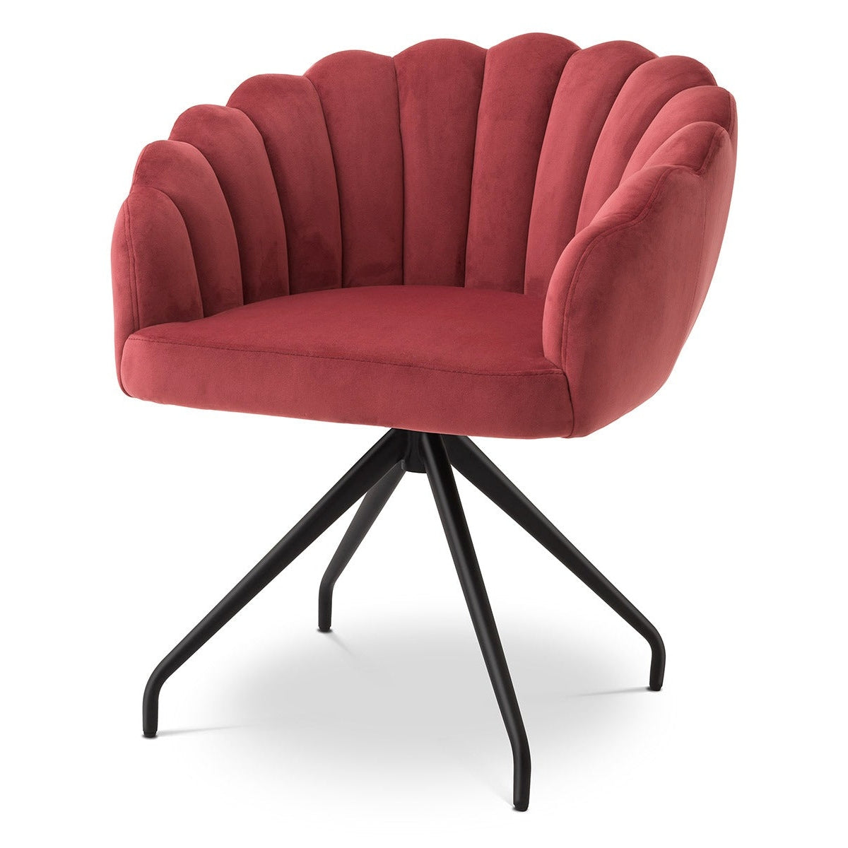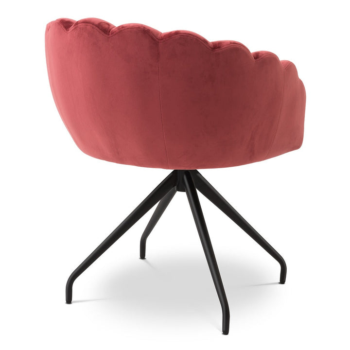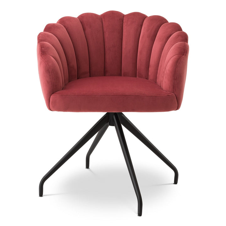 Enjoy the luxurious feel and elegant appearance of the velvet Luzern Dining Chair. Warm and soft, the Luzern's barrel shape is upholstered in savona faded red velvet and finished with a black swivel base and splayed legs. The extremely simple yet striking curved back has a scalloped top edge, perfectly combining fashion and retro to create a glam addition to your living room.