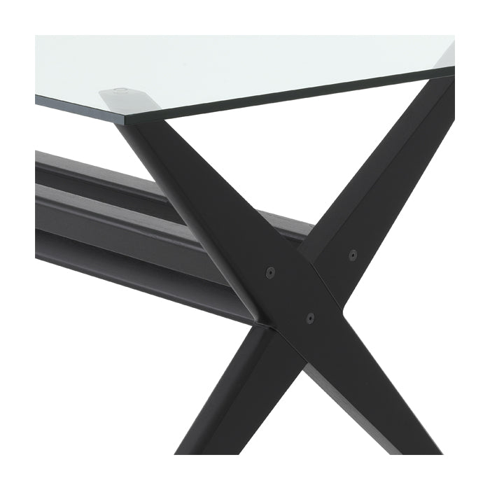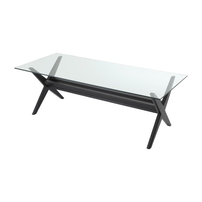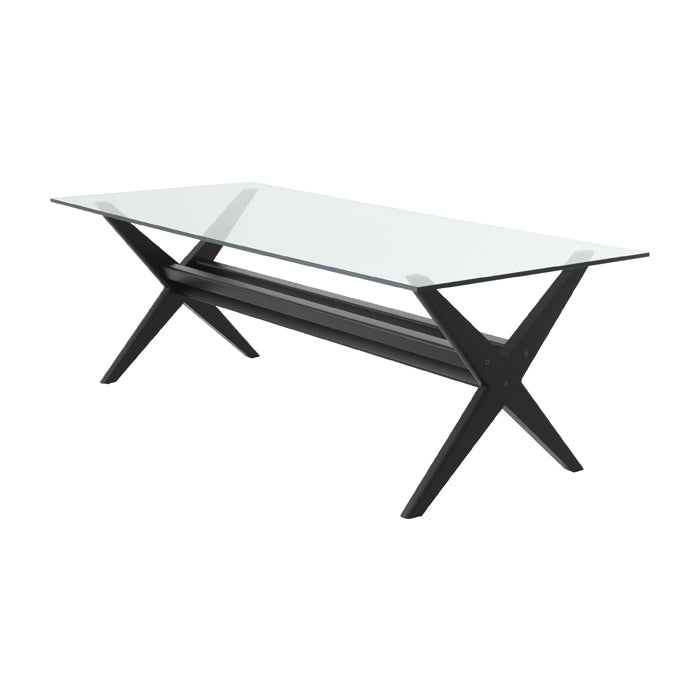 A rectangular table top of thick clear glass complements the minimalist look of this stunning vintage style dining table.