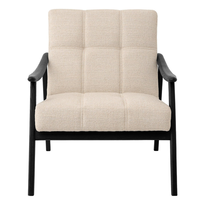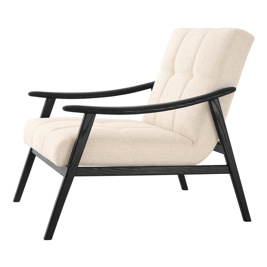 Perfectly balanced and built with a solid black wooden frame, the Mortensen Chair is a modern industrial beauty that upholds the iconic style of an original Nordic design lounge chair. The wide-set wooden frame shows evidence of natural grain and is upholstered in nuoro beige. The Mortensen Chair is the naturally perfect choice for an afternoon rest.