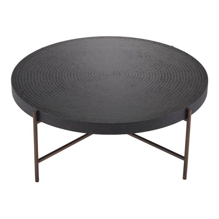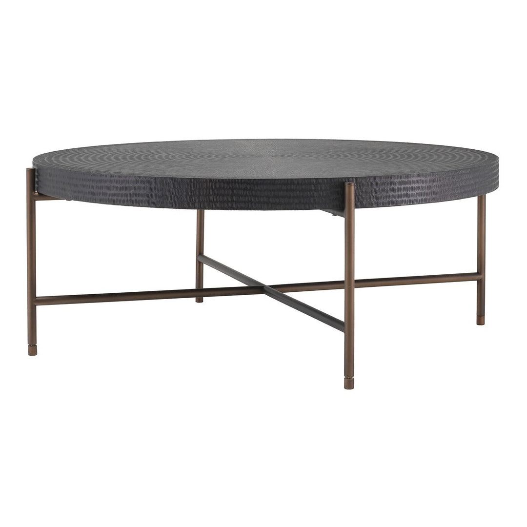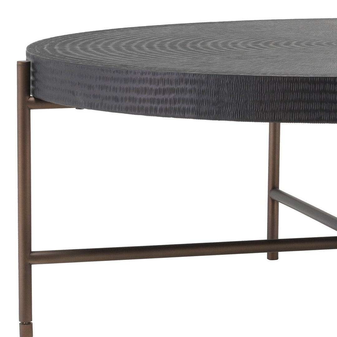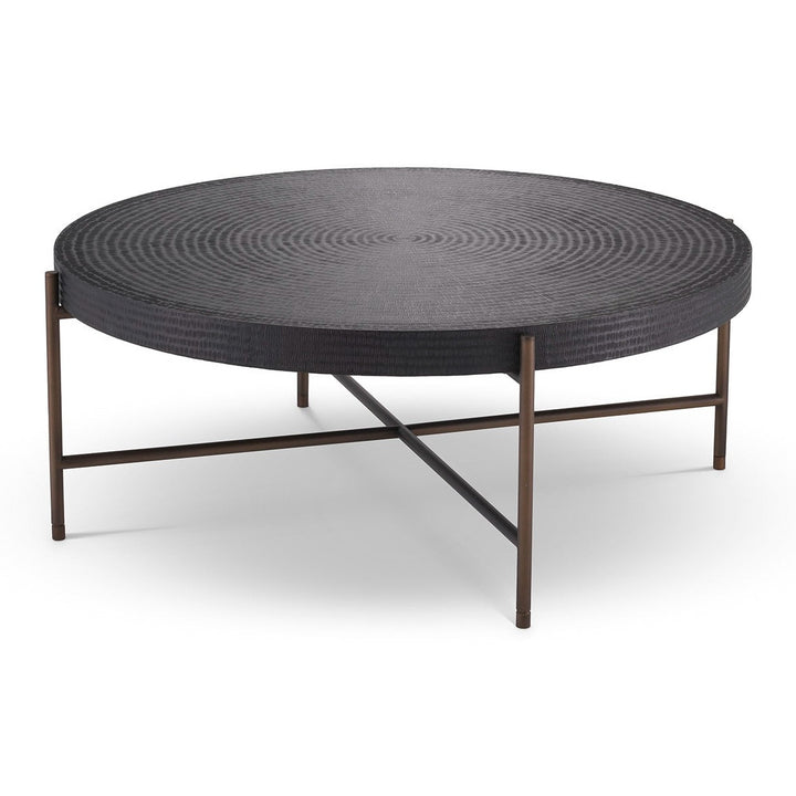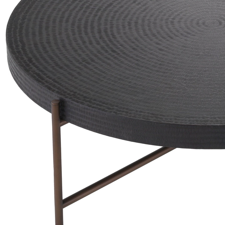 Coffee Table Nikos is characterised by a sleek, uncluttered design with minimalist style. Made entirely of metal, the frame has a bronze finish whereas the tabletop has a gunmetal finish. Reminiscent of a slice of tree trunk with annual rings, it will bring a natural feel into your living area.